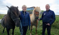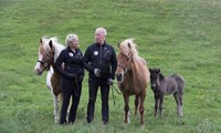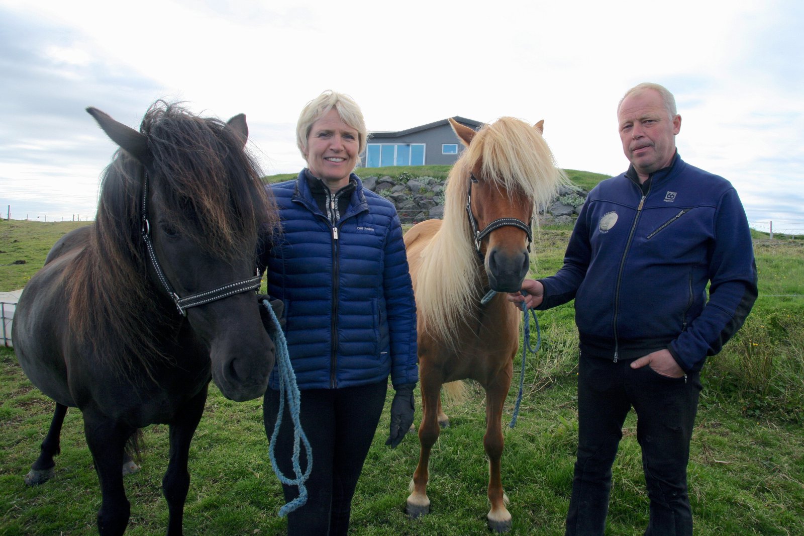 Olil Amble og Bergur Jónsson ásamt tveimur af heiðursverðlaunahryssum ræktunarbúsins, þeim Álfadísi frá Selfossi og Ljónslöpp frá Ketilsstöðum.