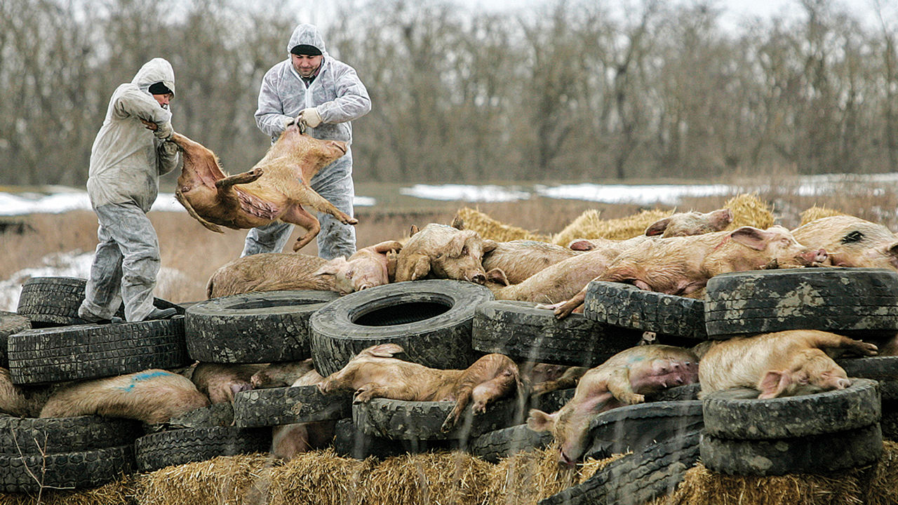 Afríska svínaflensan hefur breiðs út víða um lönd. Á þessari mynd er svínum í Rússlandi fargað vegna svínaflensunnar.