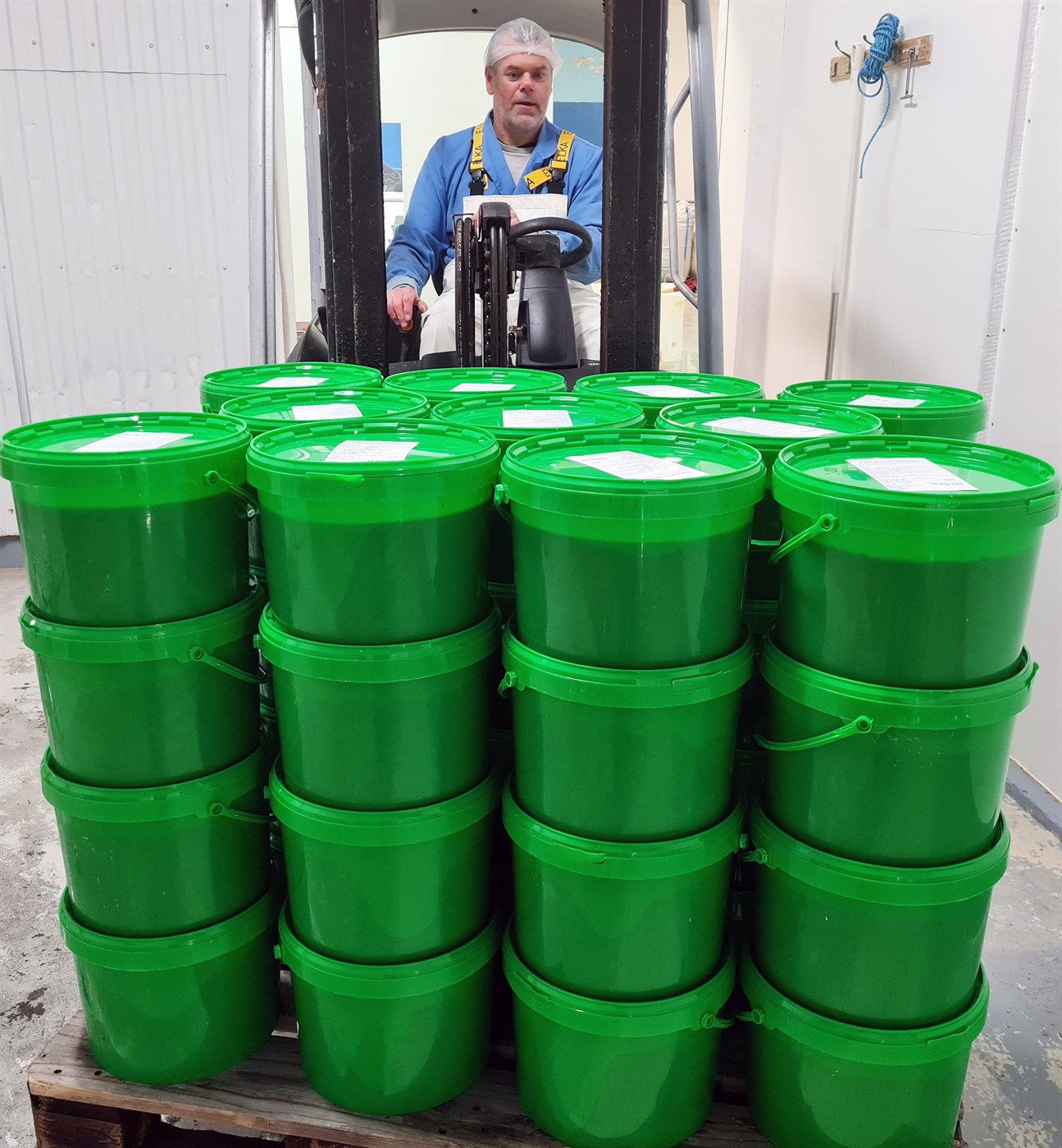 Í framhaldinu var farið að undirbúa framleiðslu á Ekta bætiefna saltsteini fyrir búfé úr afsaltinu. Elvar segir að þegar saltið komist í snertingu við fiskinn taki það í sig ýmis góð efni. „Við bætum svo í og setjum efni í sem búfé er nauðsynlegt eins og fiskimjöl, hafkalk, magnesíum, melassa, seleni og vítamínum.“ – Hann segir að Ektafiskur hafi verið í frábæru samstarfi við Nýsköpunarklasann Norðanátt við þróun saltsteinsins og þá muni styrkur Uppbyggingarsjóðs koma sér vel fyrir áframhaldandi þróun vörunnar.
