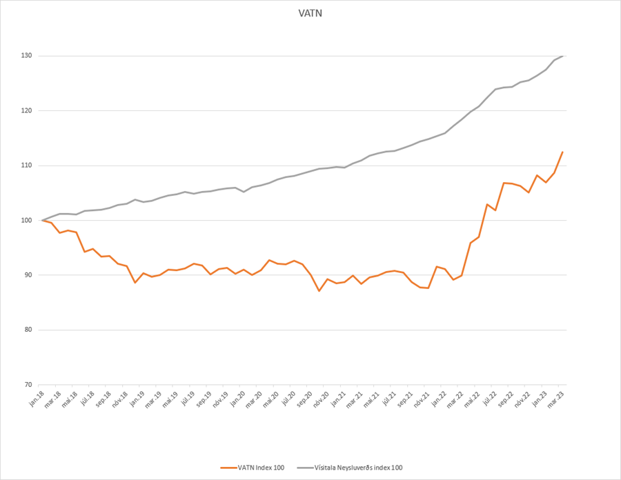 VATN vísitalan, sem búgreinadeild nautgripabænda hefur haldið utan um, hefur hækkað um 6% frá janúar til mars. Stærstu verðhækkanirnar áttu sér þó stað í mars og apríl en tölur til að uppfæra vísitöluna fyrir apríl liggja ekki enn fyrir. Búast má við því að hækkanirnar komi sterkar fram við næstu uppfærslu VATN vísitölunnar.