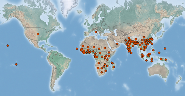 Dauðar flugur af tegundinni finnast iðulega í ávaxtasendingum frá Asíu. Flugurnar eru upprunnar og algengar í Asíu og í Afríku þar sem þær hafa dreift hratt úr sér. Þær hafa einnig fundist í ávaxtarækt í suðurríkjum Bandaríkjanna.