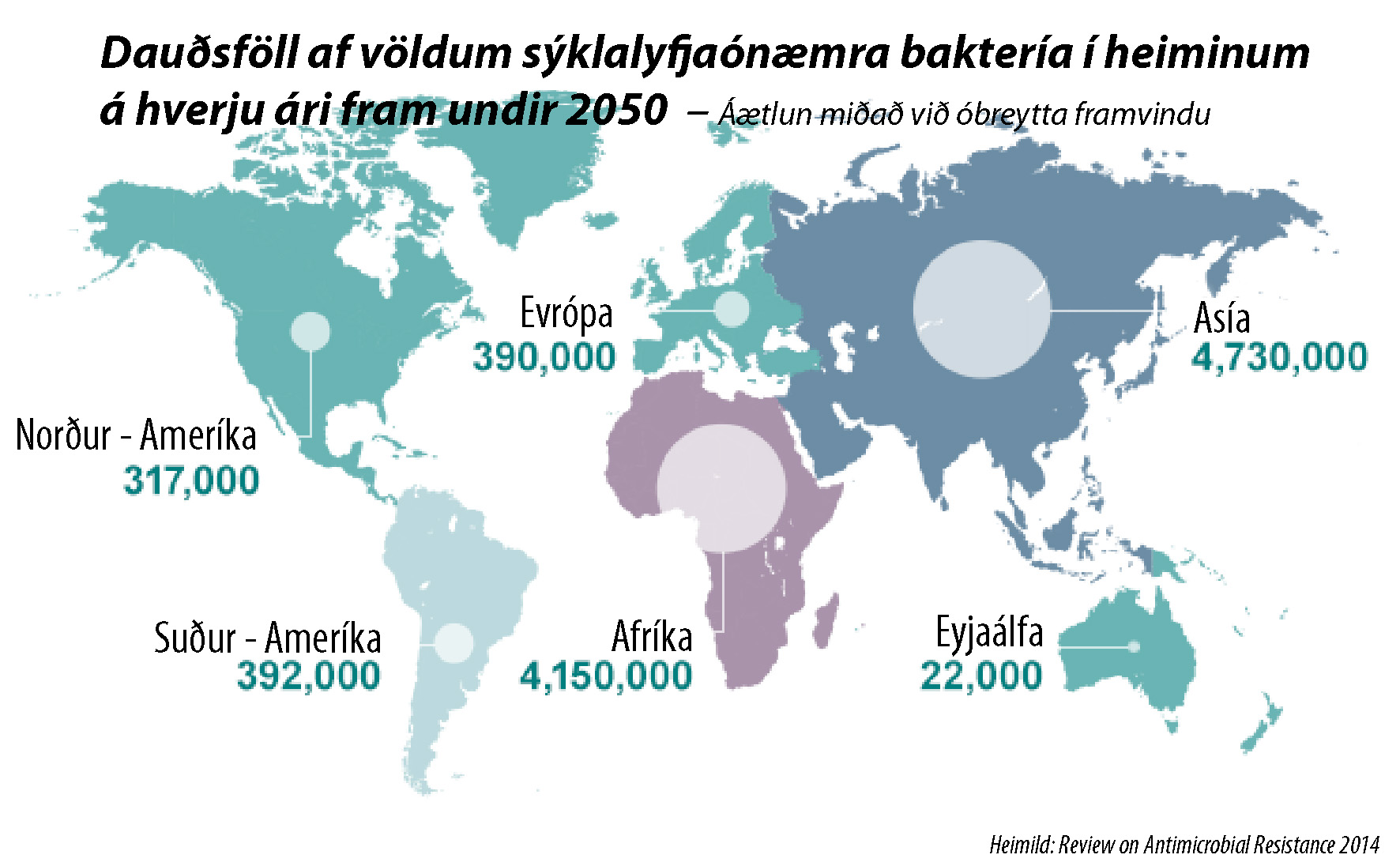 Gert er ráð fyrir að í Evrópu muni á hverju ári deyja af völdum ofursýkla um 390 þúsund manns, eða sem svarar ríflega allri íslensku þjóðinni.