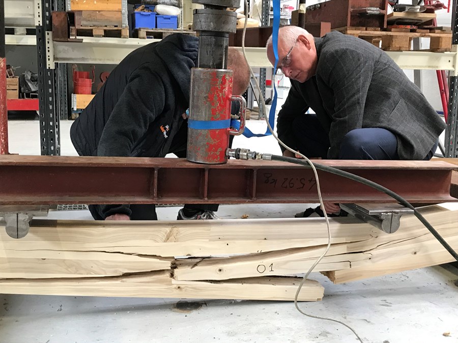 Álagsprófunin er fyrsta skrefið á áframhaldandi athugunum um hvort mögulegt sé að framleiða límtré úr íslenskum viði,“ segir Eiríkur.