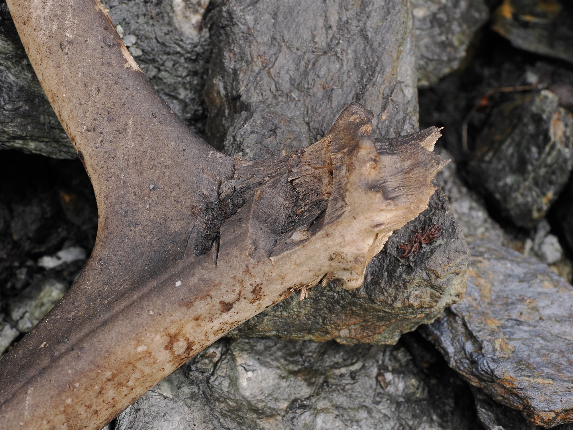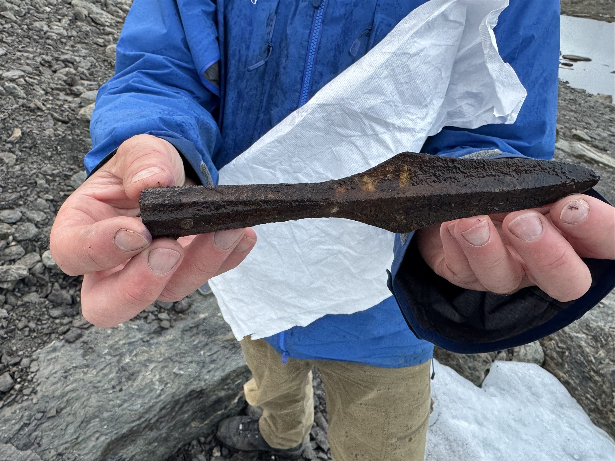 Efniviðurinn hefur varðveist einstaklega vel undir ísnum, en jafnframt hafa fundist aðrir munir eins og tveir spjótsoddar úr járni, viðarsköft, nál úr beini og verkfæri sem líkist ár. Horn af hreinkúm og kálfum liggja þar hjá í haugum, sem fornleifafræðingarnir segja sterka vísbendingu um að þarna hafi þessum dýrum verið slátrað í stórum stíl. Nánast engin horn af hjörtum fundust á vettvangi, sem þykir benda til að þau hafi verið nýtt til vinnslu á nytjamunum.