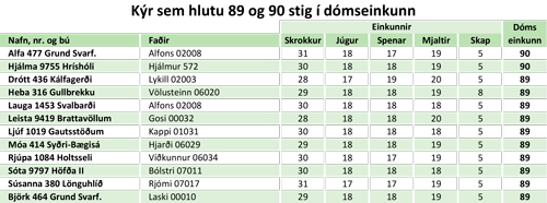 Úr 2009 árganginum náðu 2 kýr á svæðinu 90 stigum og 10 hlutu 89 stig. Fengu eigendur þeirra viðurkenningu frá Félagi eyfirskra kúabænda. Voru það stækkaðar og áritaðar myndir af kúnum.