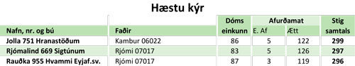 Alfa og Hjálma hæst hjá eyfirskum kúabændum