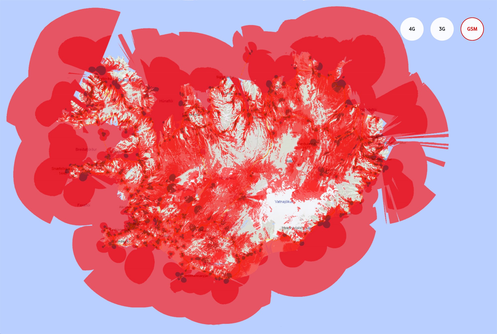 GSM dreifikerfi Símans eins og það er sýnt á heimasíðu fyrirtækisins.