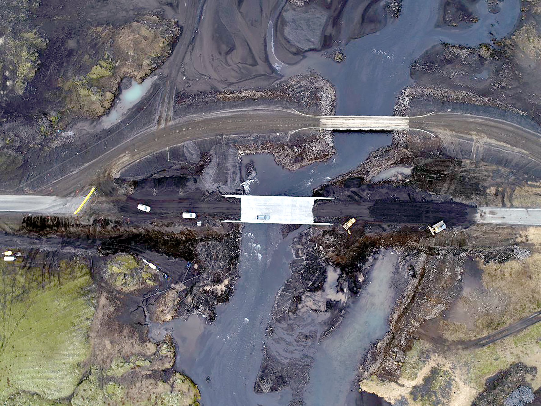 Bráðabirgðabrú og ný brú yfir Brunná. Mynd / Ísak
