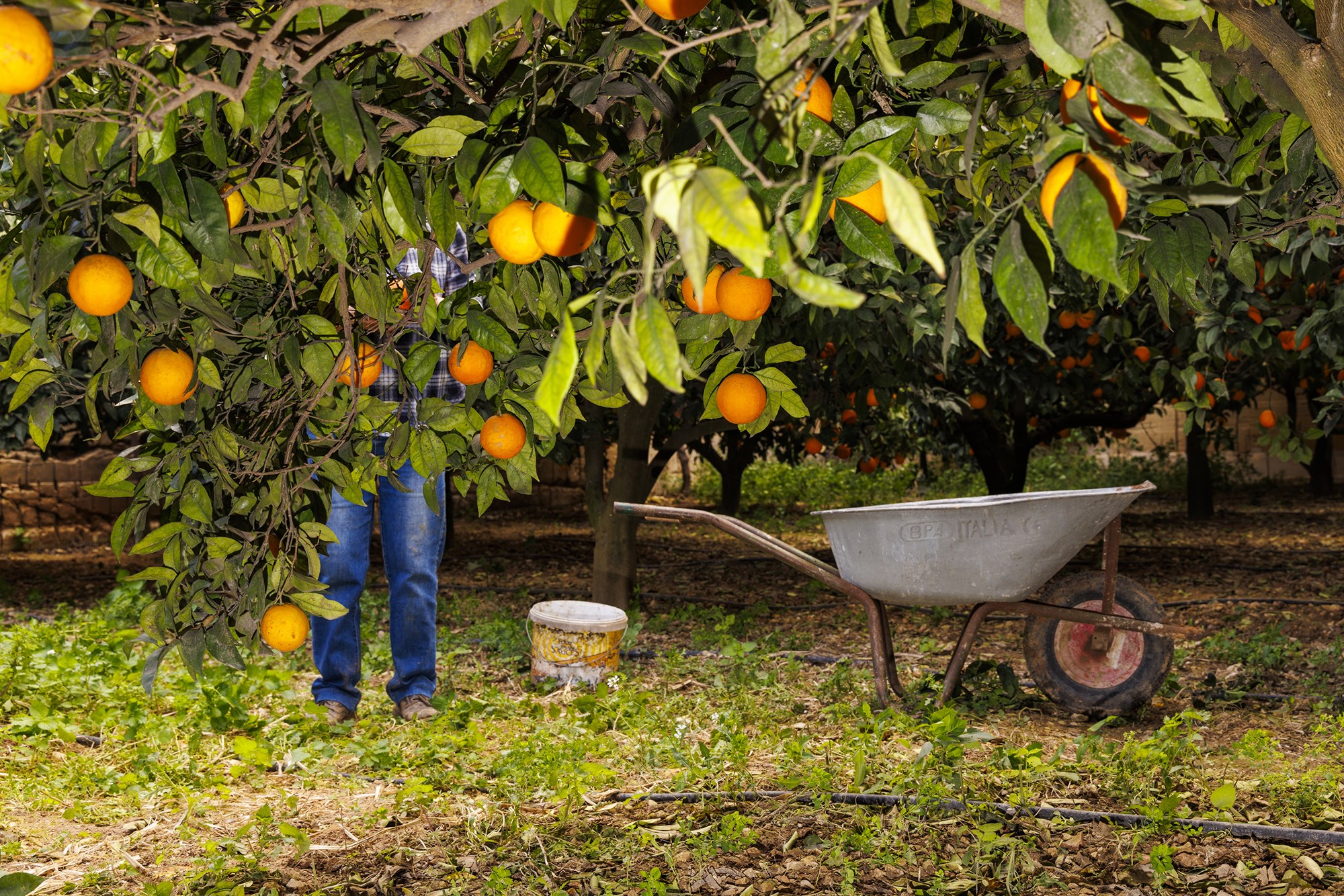 Appelsínubúgarðurinn er ekki stór og því keyra bændurnir ávextina af akrinum með hjólbörum. Á einum stað eru þeir með aðstöðu til að þrífa og flokka appelsínurnar, en þeim er helt í þvottabala með vatni og hver og ein skrúbbuð með svampi. Eftir það eru þær vigtaðar og settar í fjölnota plastkassa og keyra bændurnir afurðirnar sjálfir til viðskiptavina.