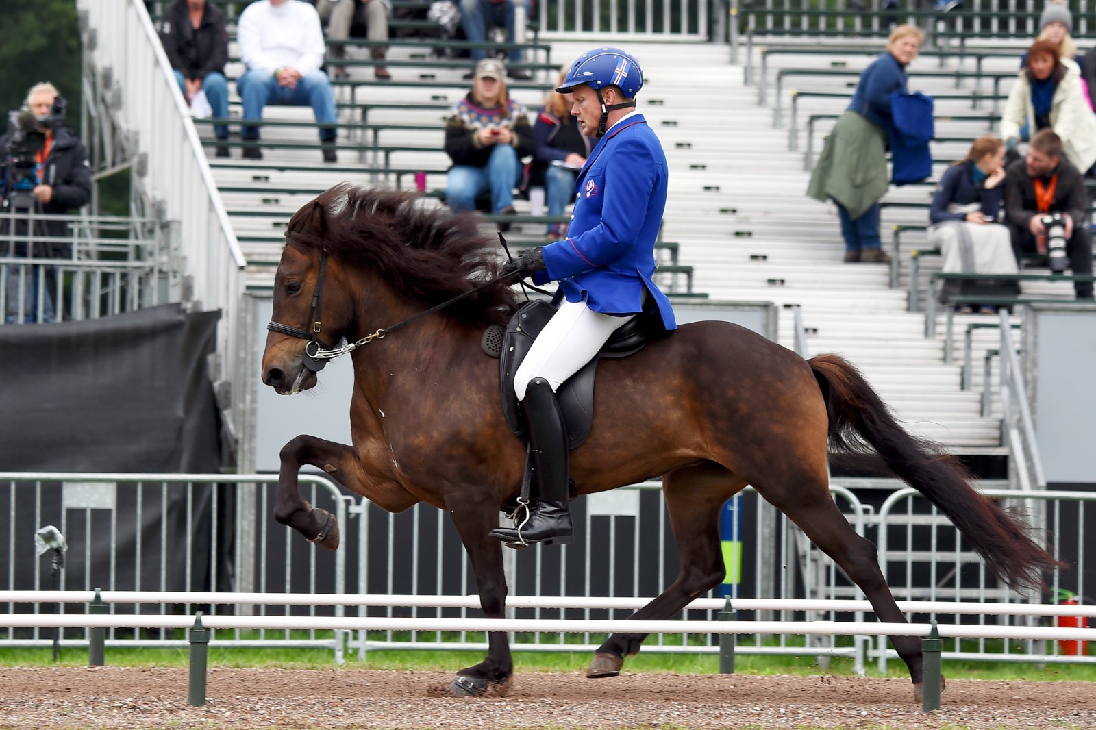 Skinfaxi fra Lysholm var fulltrúi Danmerkur en hann fór út í móðurkviði. Faðir hans er Kiljan frá Steinnesi en móðirin Sæla frá Þóreyjargnúpi sem sigraði í 100 metra skeiði á mótinu. Knapi er Søren Madsen.