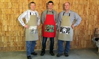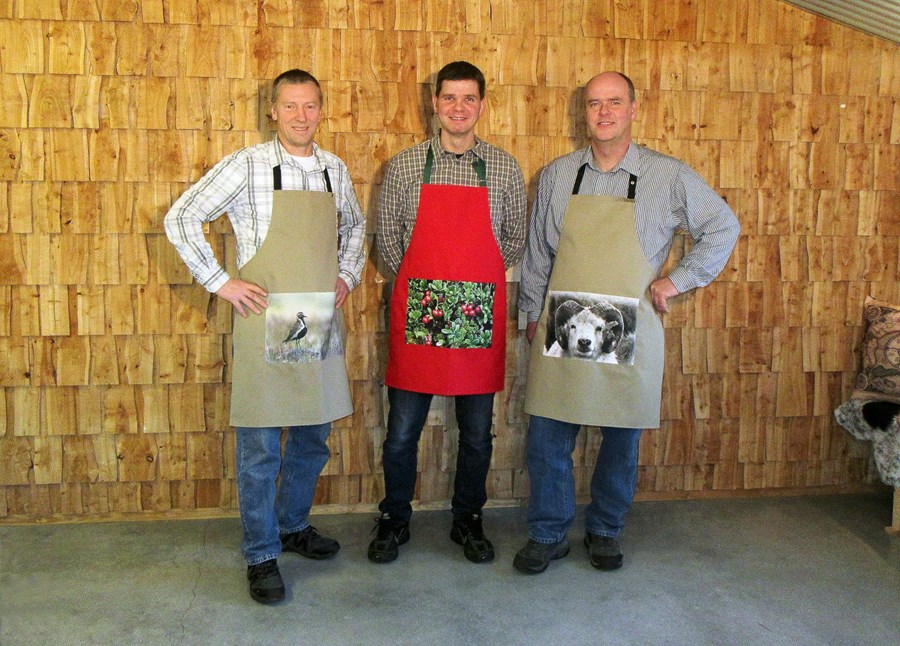 „Við hófum nú nýverið sölu á nýjum gerðum af svuntum og fengum bændur úr nágrenninu til að sitja fyrir í svuntunum. Ég var ansi ánægð með útkomuna,“ segir Elín Aradóttir. Hún segir að bændum í Húnaþingi sé ýmislegt til lista lagt. Það hafi bara verið eins og þeir hefðu aldrei gert annað, karlarnir, en að vera fyrirsætur.