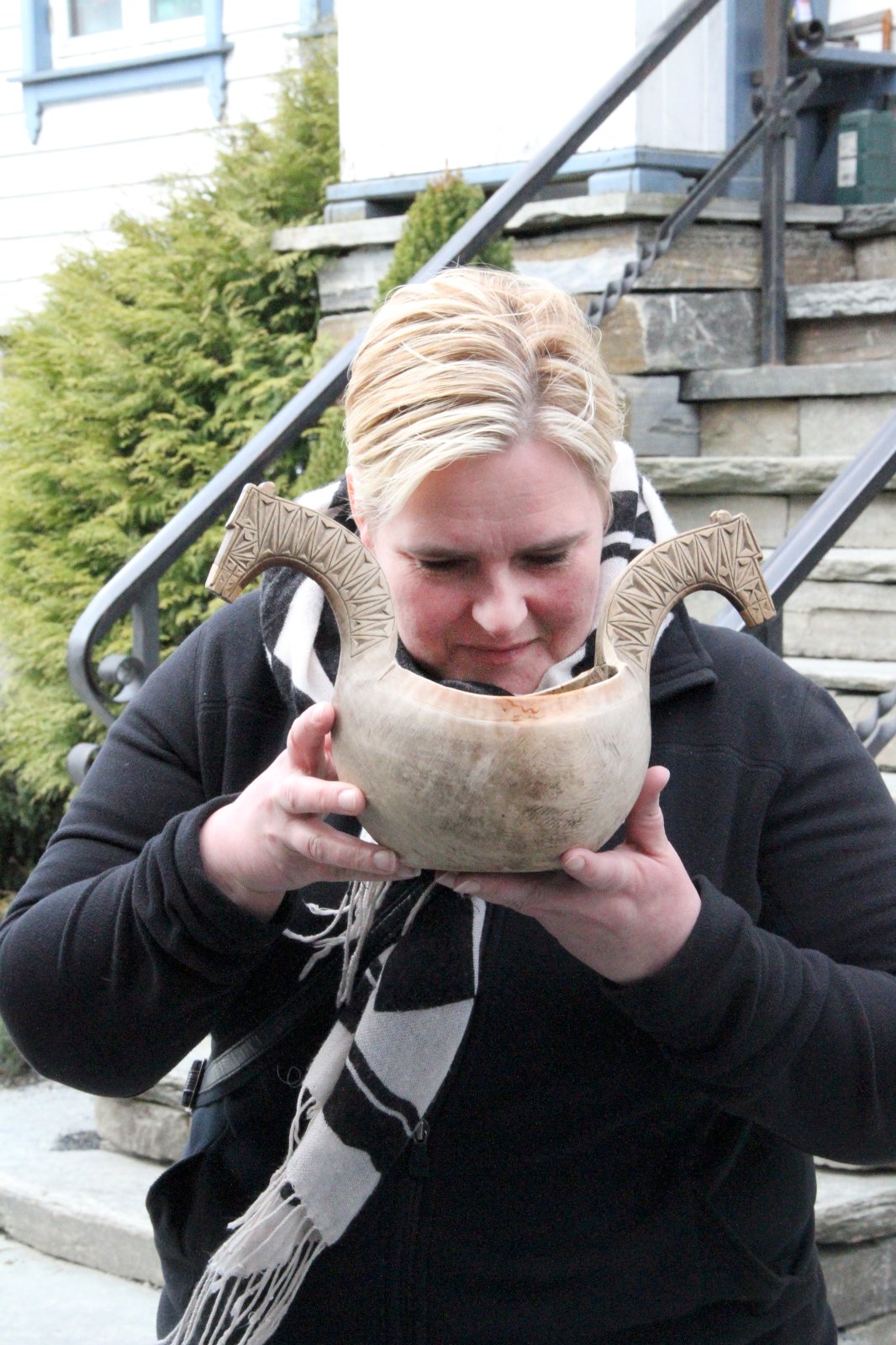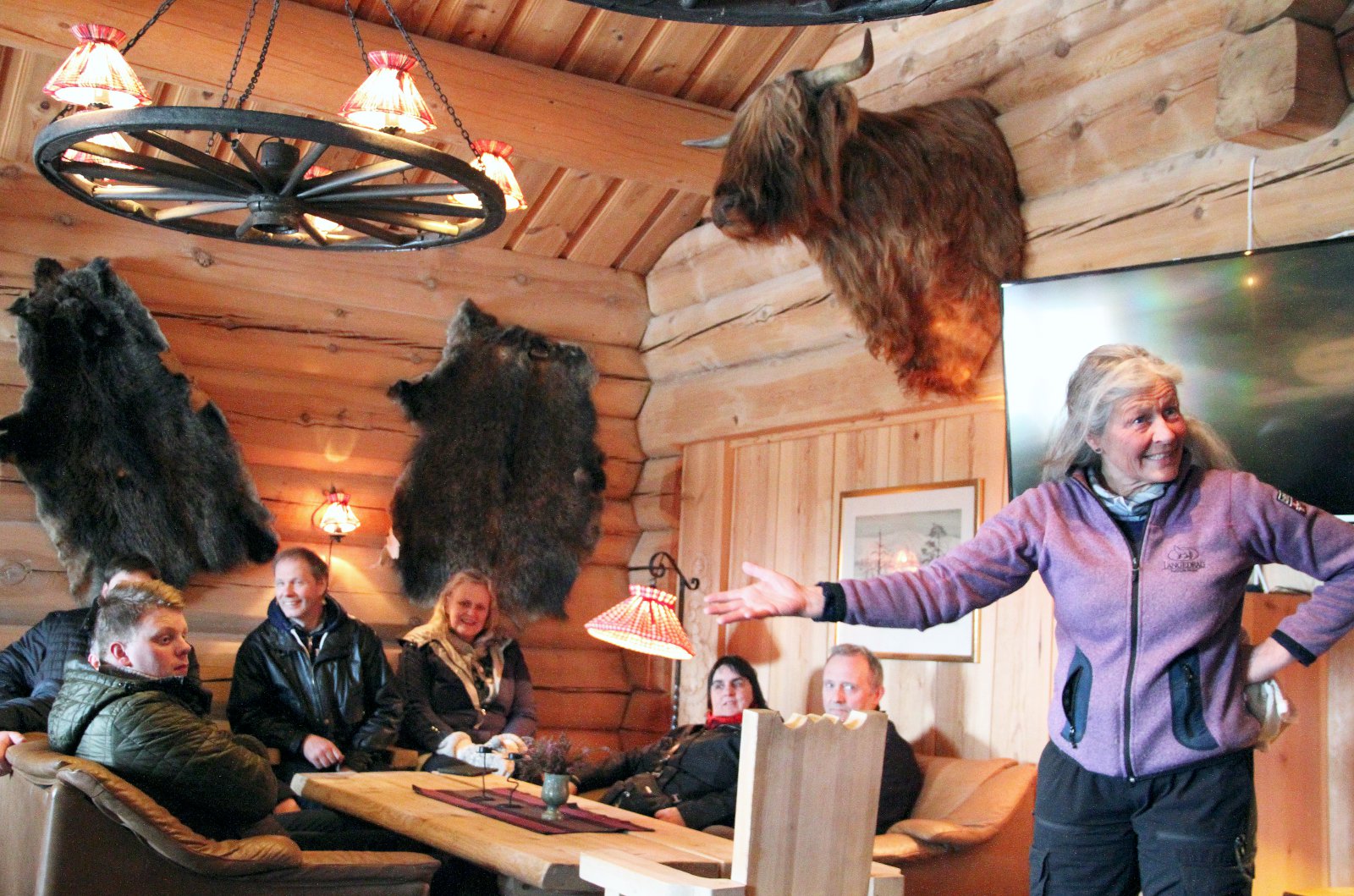 Hér fékk hópurinn að smakka á norskri betasúpu sem svipar til íslenskrar kjötsúpu nema í hana er sett reykt kjöt og korv-pylsur. Eftir málsverðinn fékk hópurinn kynningu á staðnum og þeir sem vildu gátu sviðið kindahausa við opnum eldi en einnig fékk hann að sjá þegar hausarnir voru sviðnir í vél í verksmiðjunni.