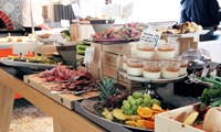 Rétt við Voss komst hópurinn í Evanger Landhandleri, litla sveitaverslun og kaffihús þar sem svæðisbundin matvæli eru í hávegum höfð.