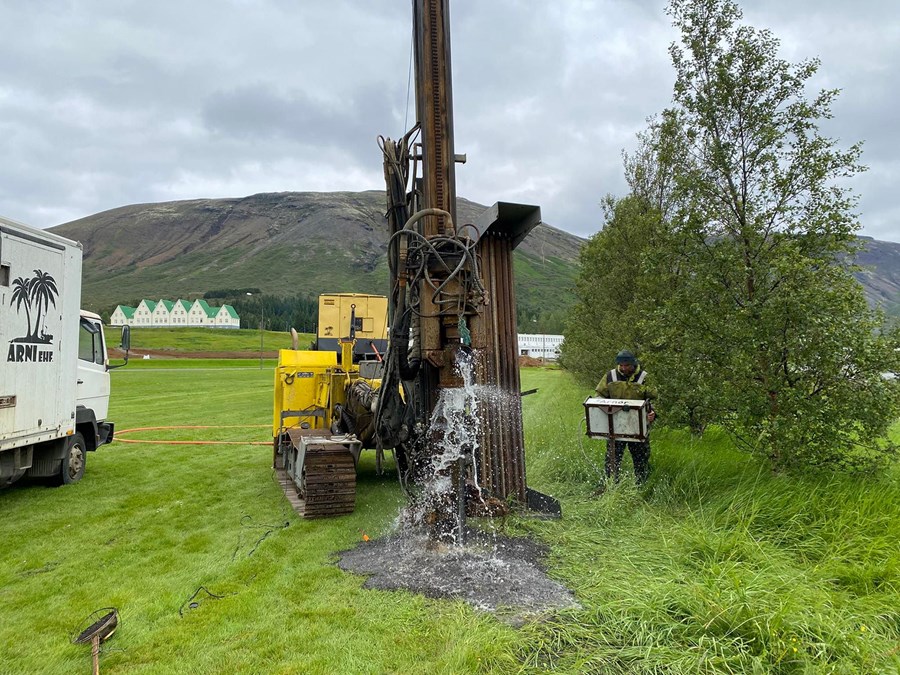 Í sumar hefur verið unnið að borun svokallaðra hitastigulshola á Laugarvatni.