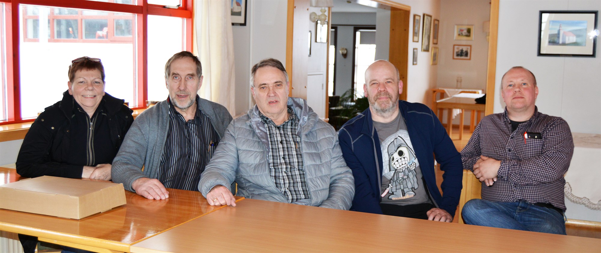 Útgáfustjórn og höfundar Byggðasögu Skagafjarðar. Talið frá vinstri: Sigurlaug Ebba Kristjánsdóttir, fulltrúi Sveitarfélagsins Skagafjarðar, Bjarni Maronsson, fulltrúi Kaupfélags Skagfirðinga og formaður útgáfustjórnar, Hjalti Pálsson ritstjóri, Kári Gunnarsson meðhöfundur og Gunnar Rögnvaldsson, fulltrúi Sögufélags Skagfirðinga.