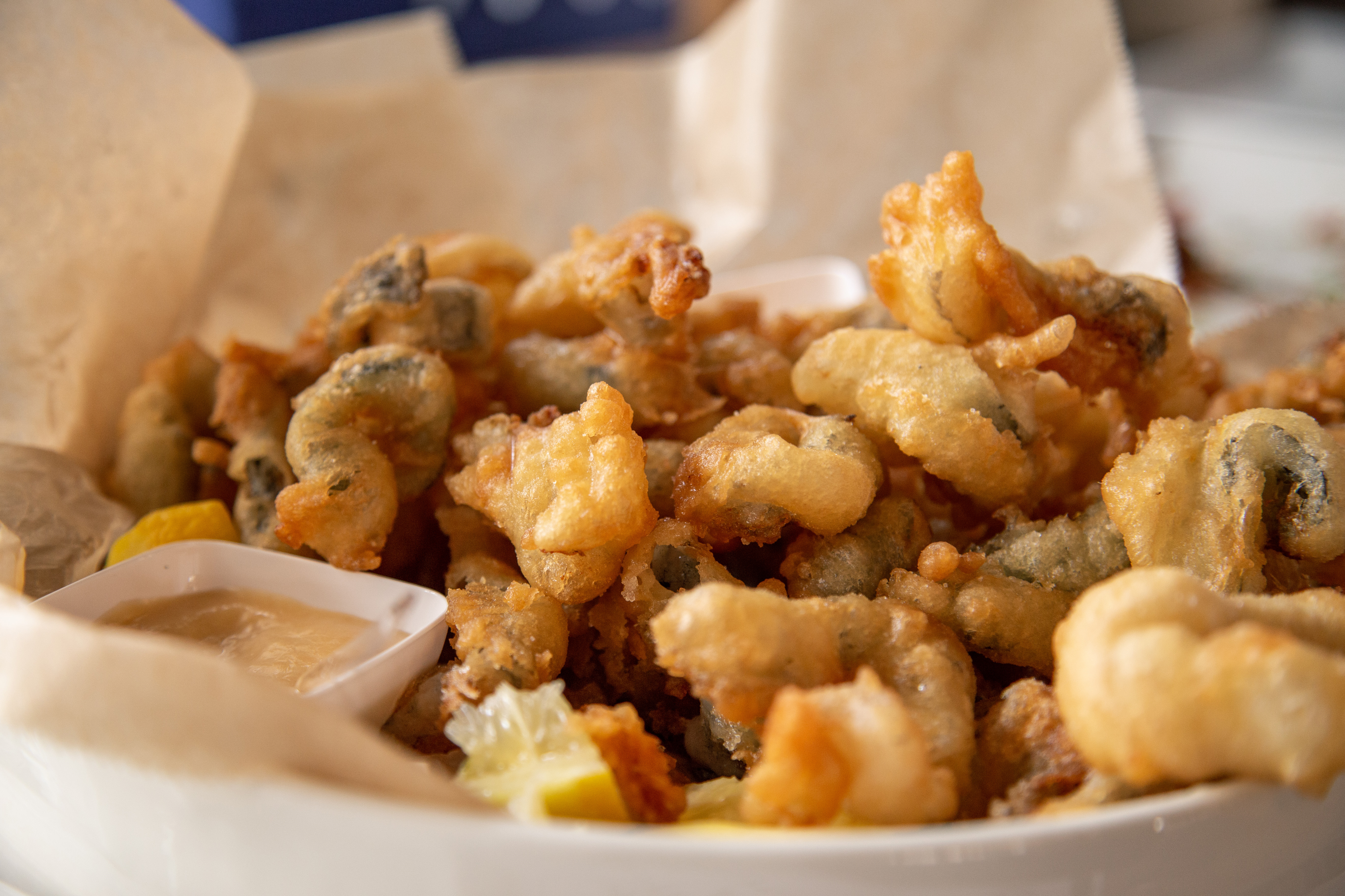 Sigurrétturinn. Djúpsteikt hvelja, reyktur rauðmagi og lifrarmajónes.