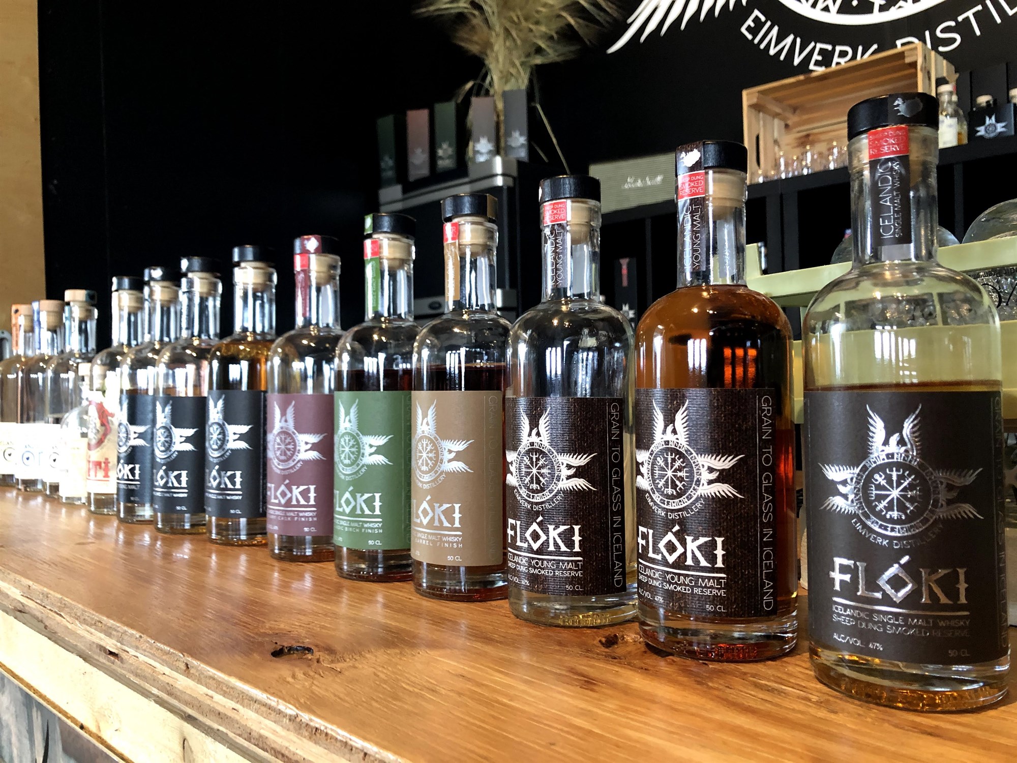 Flóki er íslenskur einmöltungur (single malt) og kemur núna í sex mismunadi útgáfum; standard, taðreyktur (byggið taðreykt), úr sérrí-tunnu, úr bjórtunnu sem við fáum í gegnum samstarf við önnur íslensk brugghús og birkilegið. Síðan kemur reglulega út blár miði sem er eitthvað alveg sérstakt,“ segir Eva.