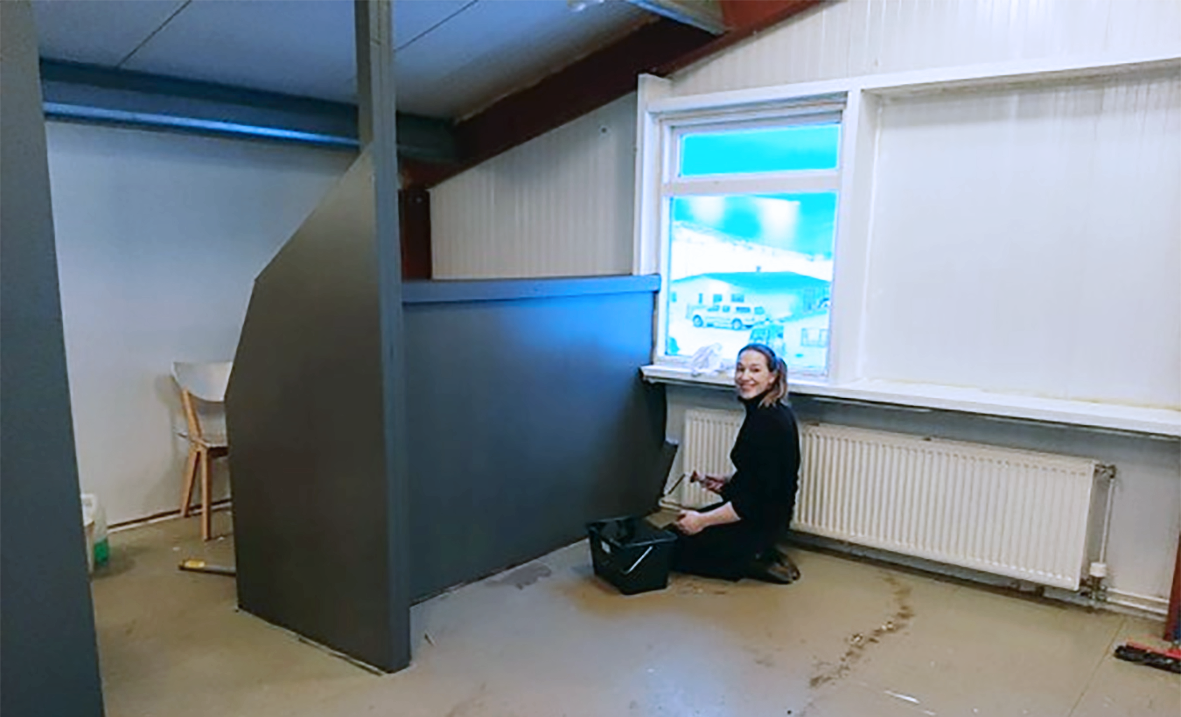 Innréttingar voru rifnar út og ónýtum húsbúnaði var hent. Þá var salurinn málaður að mestu og eins voru salerni máluð en eins stendur til að mála anddyri reiðhallarinnar.