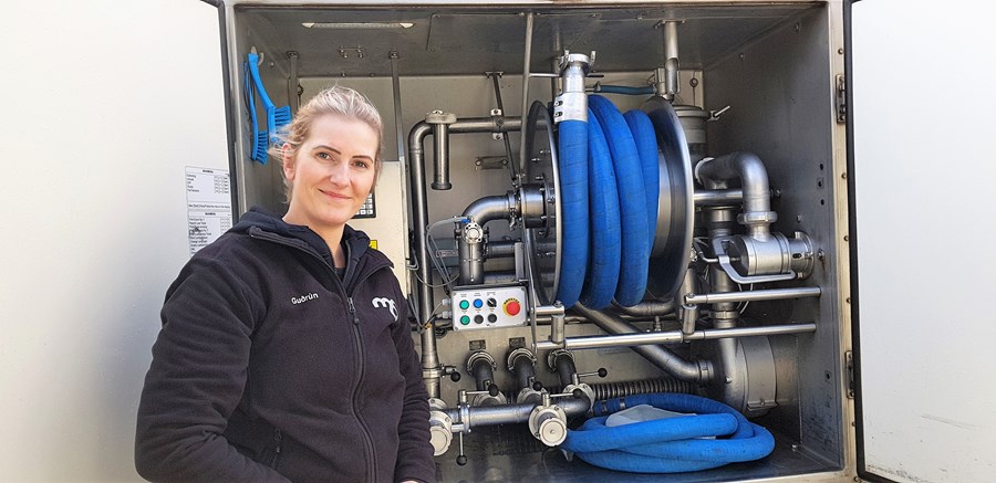„Ég hef fengið frábærar viðtökur, það er enginn rembingur í körlunum, það vilja allir hjálpa mér og gefa mér góð ráð, þetta er bara frábært,“ segir Guðrún Arna Sigurðardóttir, sem tók nýlega við starfi mjólkurbílstjóra hjá MS á Selfossi.