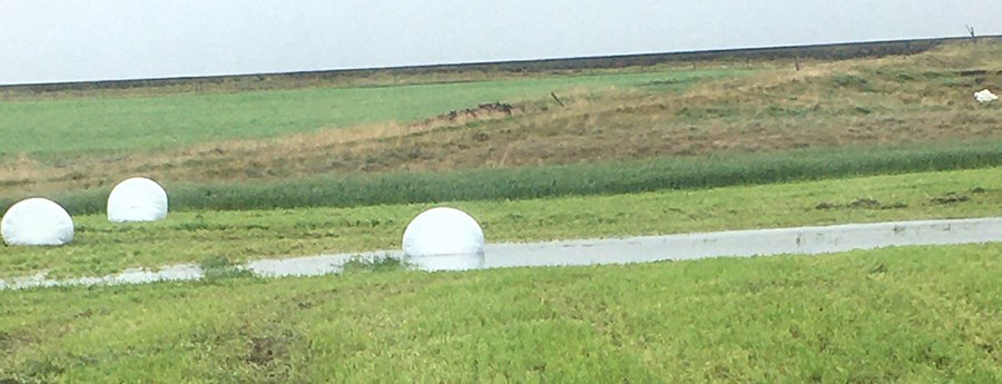 Eitthvað eiga bændur eftir að ná inn af há og nokkrir eru með grænfóður, en Guðný segir að grænfóðursstykkin séu svo gott sem ófær vegna bleytu, vart hægt að komast um flagið með tækin.