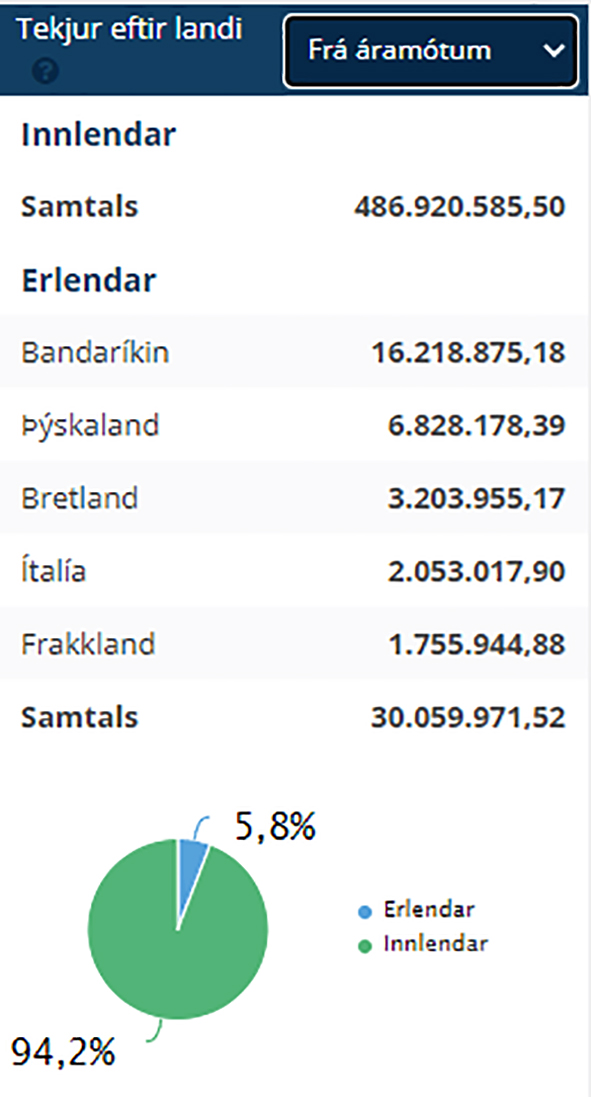 Tekjur frá erlendum ferðamönnum hafa numið tæplega 6% að undanförnu og segir Valgeir að uppsafnað frá áramótum hafi Bandaríkjamenn notað göngin mest þegar horft er til erlendra ferðamanna. Fyrir hafi komið ein og ein vika þar sem Bretar og Þjóðverjar hafi skotið sér á toppinn í þeim efnum.