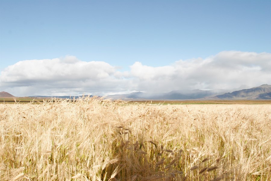 Uppskera ársins 2023 nam um 9.290 tonnum alls af þresktu korni, en var um 9.785 tonn árið 2022 samkvæmt gögnum úr Jörð.is. Þar kemur fram að bygg hafi verið ræktað á 3.274 ha, hafrar á 128 ha, vetrarhveiti á 46 ha, vetrarrúgur á 37 ha og vorhveiti á 10 ha.