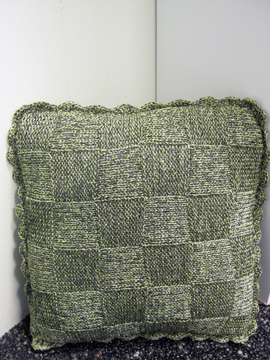 Gengið frá endum og púði með púðafyllingu settur inn í.