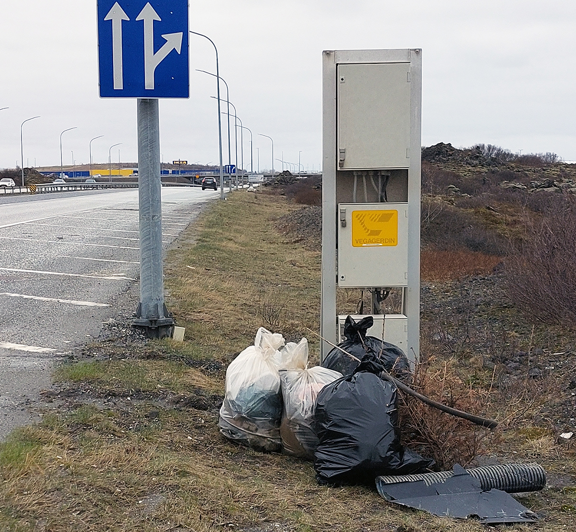 Í byrjun apríl þurfti ég að aðstoða mann rétt norðan Hvalfjarðarganga, nánar tiltekið um 100 metra inn á veginum að Akranesi. Í nálægt 30 mínútur vorum við að vinna við bílinn og á meðan sáum við mann sem hafði lagt í vegkantinn um 100 metrum frá okkur vera að tína rusl í vegkantinum. Frá þeim stað sem hann lagði og að hringtorginu við norðurenda Hvalfjarðarganga voru um 200 metrar. Á þessari stuttu vegalengd kom hann klyfjaður með að mér sýndist þrjá fulla plastpoka, búinn að tína rusl beggja vegna við veginn á aðeins 300 metrum.
