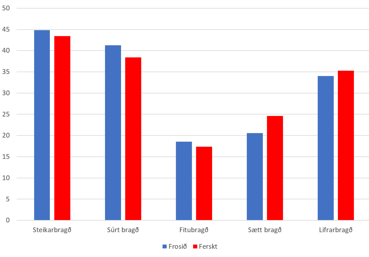 Ferska kjötið var aðeins sætara á bragðið en frosna kjötið.