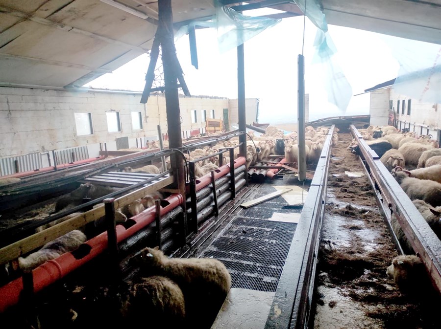 Óðinn Logi Þórisson og Ásta Kristín Guðmundsdóttir Michelsen reka þar sauðfjárbú með 180 kindum. Klukkan 11 að kvöldi 5. febrúar kom sterk vindhviða sem reif hluta af þaki íbúðarhússins. Fjárhúsin á bænum fuku morguninn eftir. Austurfrétt greindi fyrst frá.