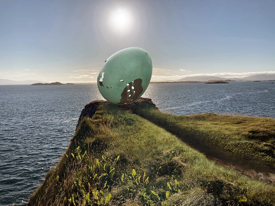 Staðsetningin Fjöreggsins, sem er útsýnisskúlptúr, og í senn útsýnispallur, upplifunar- og áfangastaður, verður á klettasnösinni austan megin á eyjunni.