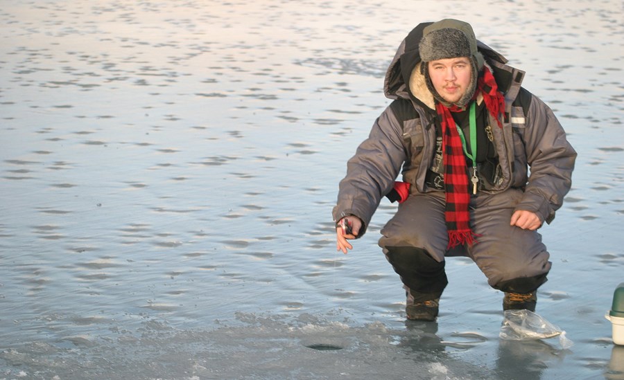 „Maður fer um leið og ísinn er orðinn nógu traustur, hann er að verða það sums staðar núna, bíð spenntur. En biðin styttist, ég fer mest á Hafravatn, upp í Svínadal og austur fyrir fjall. Þú kemur bara með á dorg í vetur, Bender,“ sagði veiðimaður sem sagðist hafa veitt á stöng fyrir fimm árum á aðfangadag og fékk fisk.