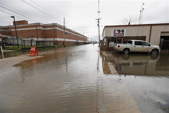 Vatn flæddi um götur í Jackson 17. febrúar úr ánnni Pearl River.