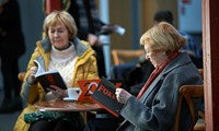 Frú Vigdís Finnbogadóttir, verndari Krabbameinsfélags Íslands, mætti í útgáfuhófið á Kaffi Flóru.