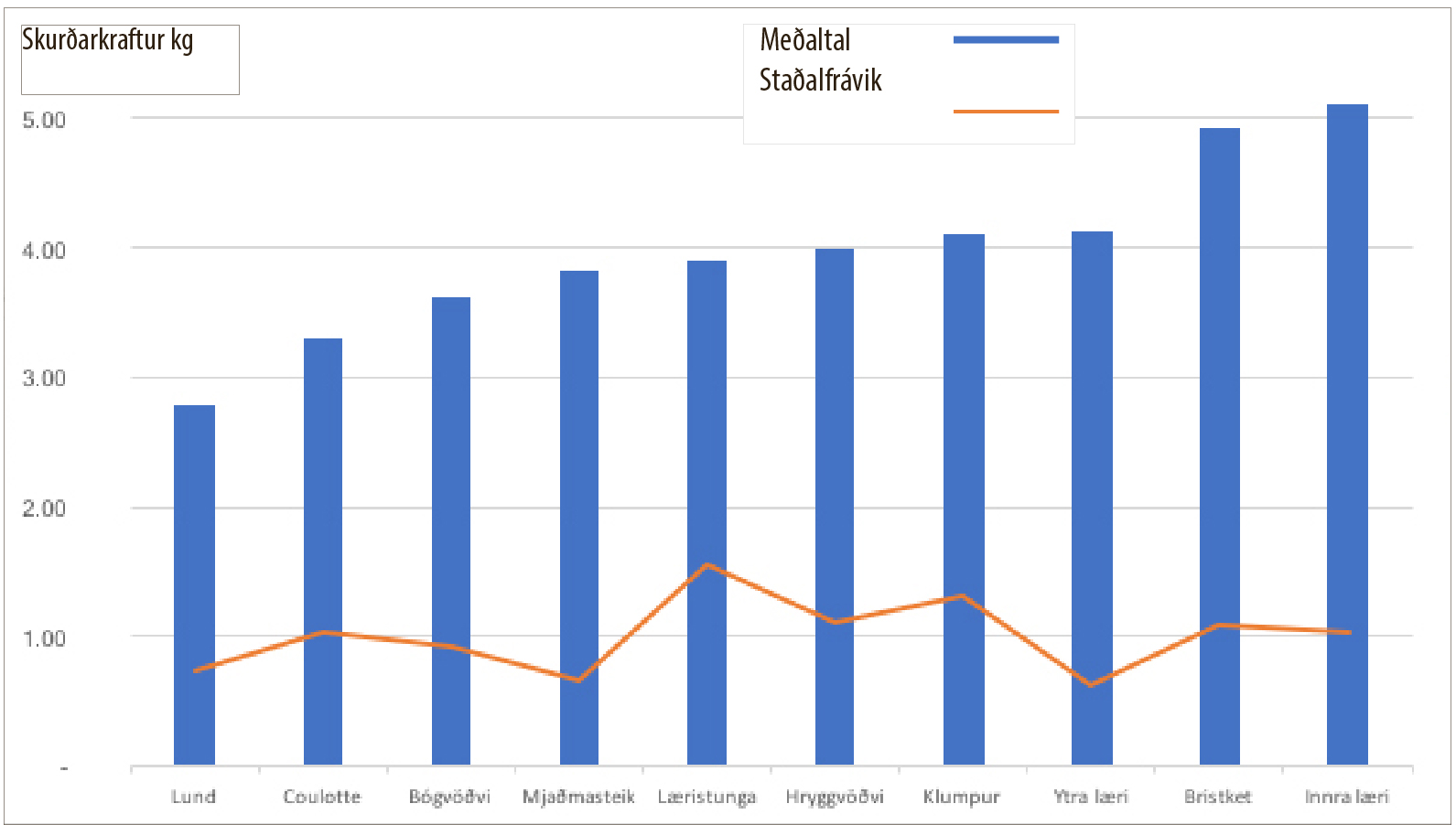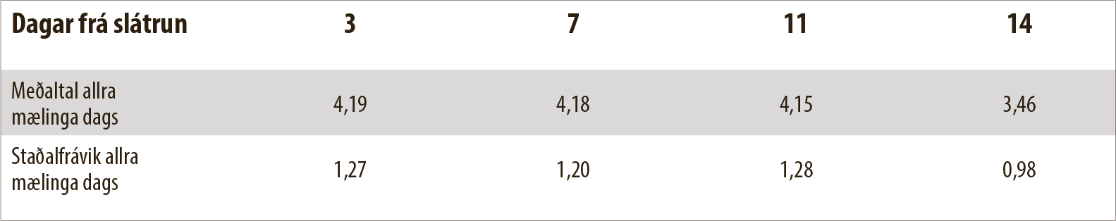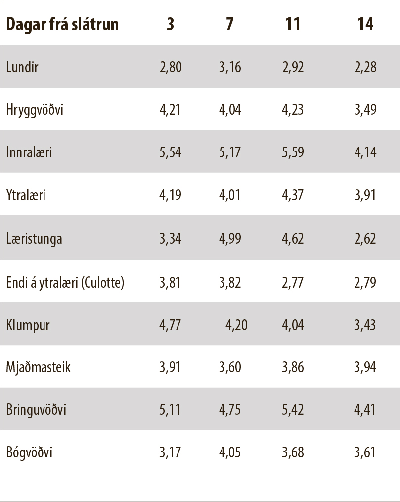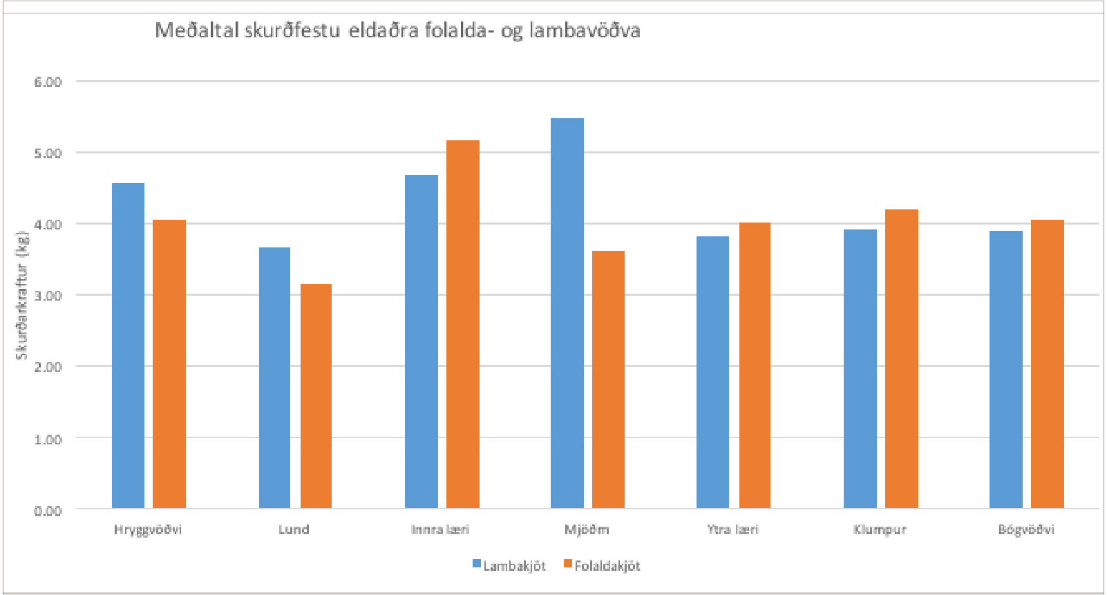Það er gjarnan talað um að kjöt sem mælist 5,0 kg í skurðkrafti eða undir sé meyrt og þess vegna ekki annað hægt en að halda því fram að þetta séu mjög jákvæðar niðurstöður,“ segir Eva.