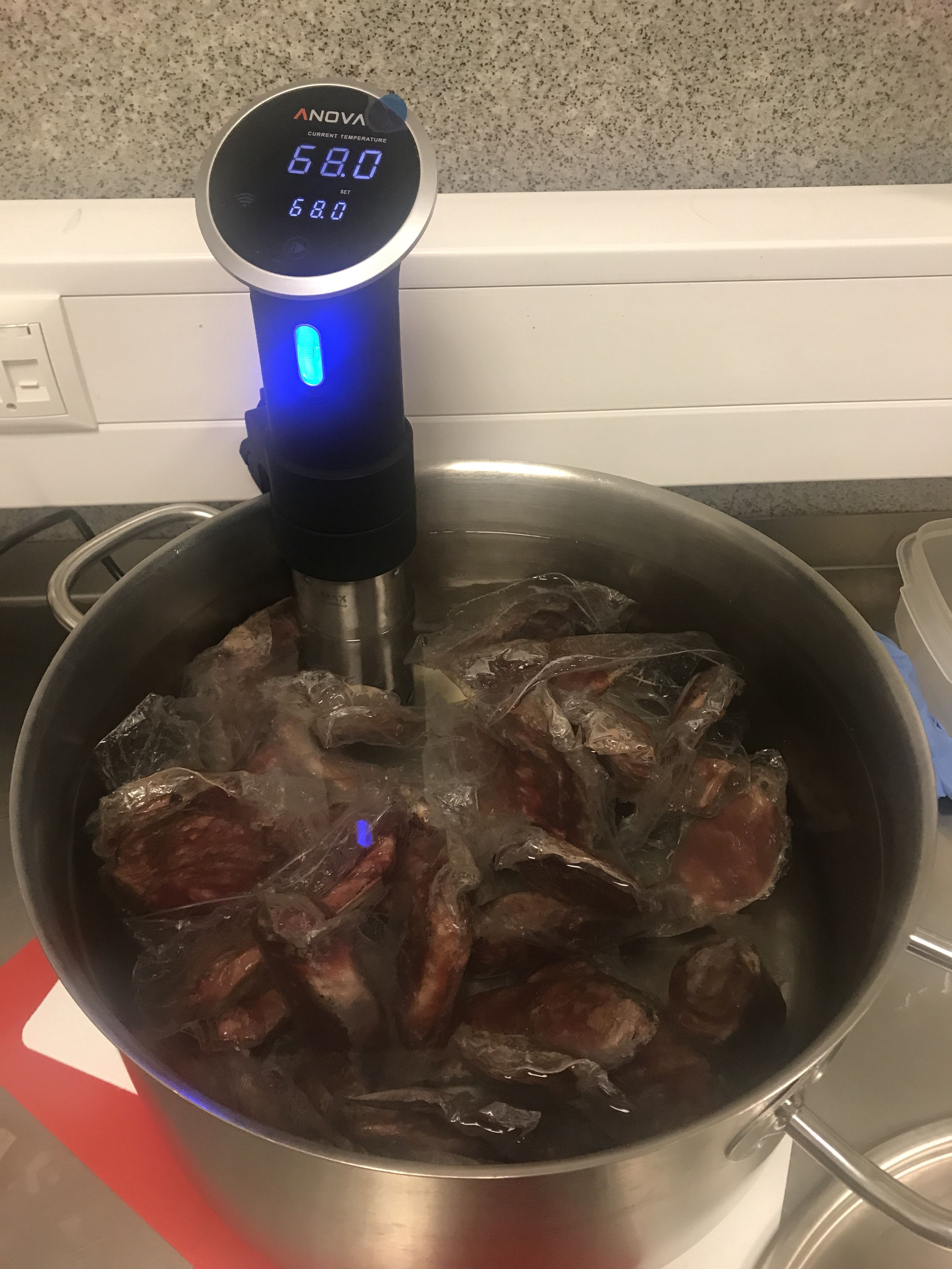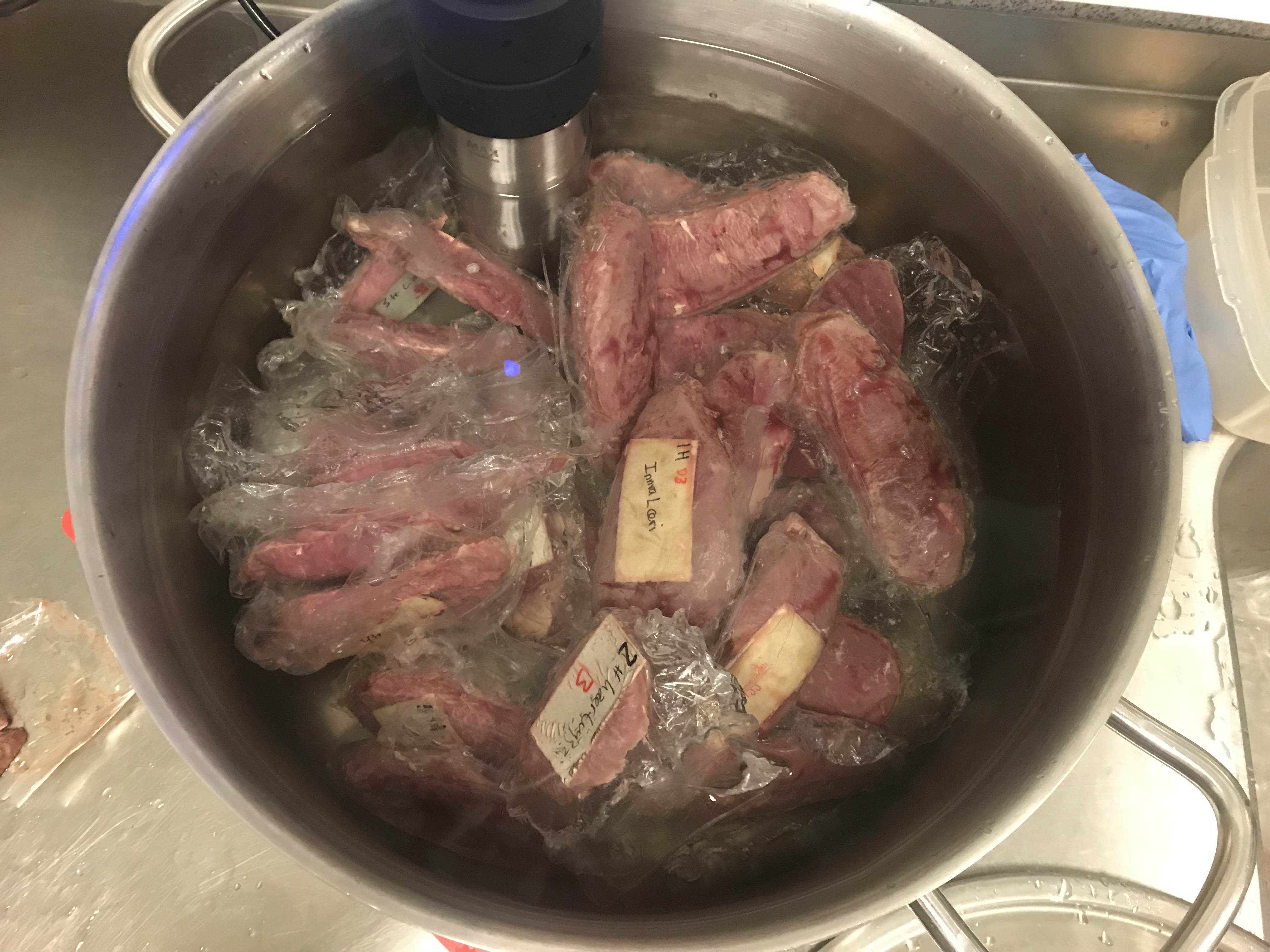 Að sögn Evu lögðu hrossabændur á Suðurlandi til þrjú folöld sem slátrað var á Hellu 3. desember 2018. „Öllum vöðvum var skipt upp í fjórar sneiðar til að mæla lit, efnasamsetningu, bragðgæði/meyrni með vörumati og skurðkraft/suðurýrnun. Ein fór í litmælingu, önnur í efnamælingu, þriðja í vörumat og sú fjórða í Warner-Bratzler áferða-rmælingu og mælingar á suðurýrnun. Fyrir vörumat, áferða-rmælingu og suðurýrnun voru vöðvarnir eldaðir með Sous Vide-aðferð í klukkutíma við 68 gráður.