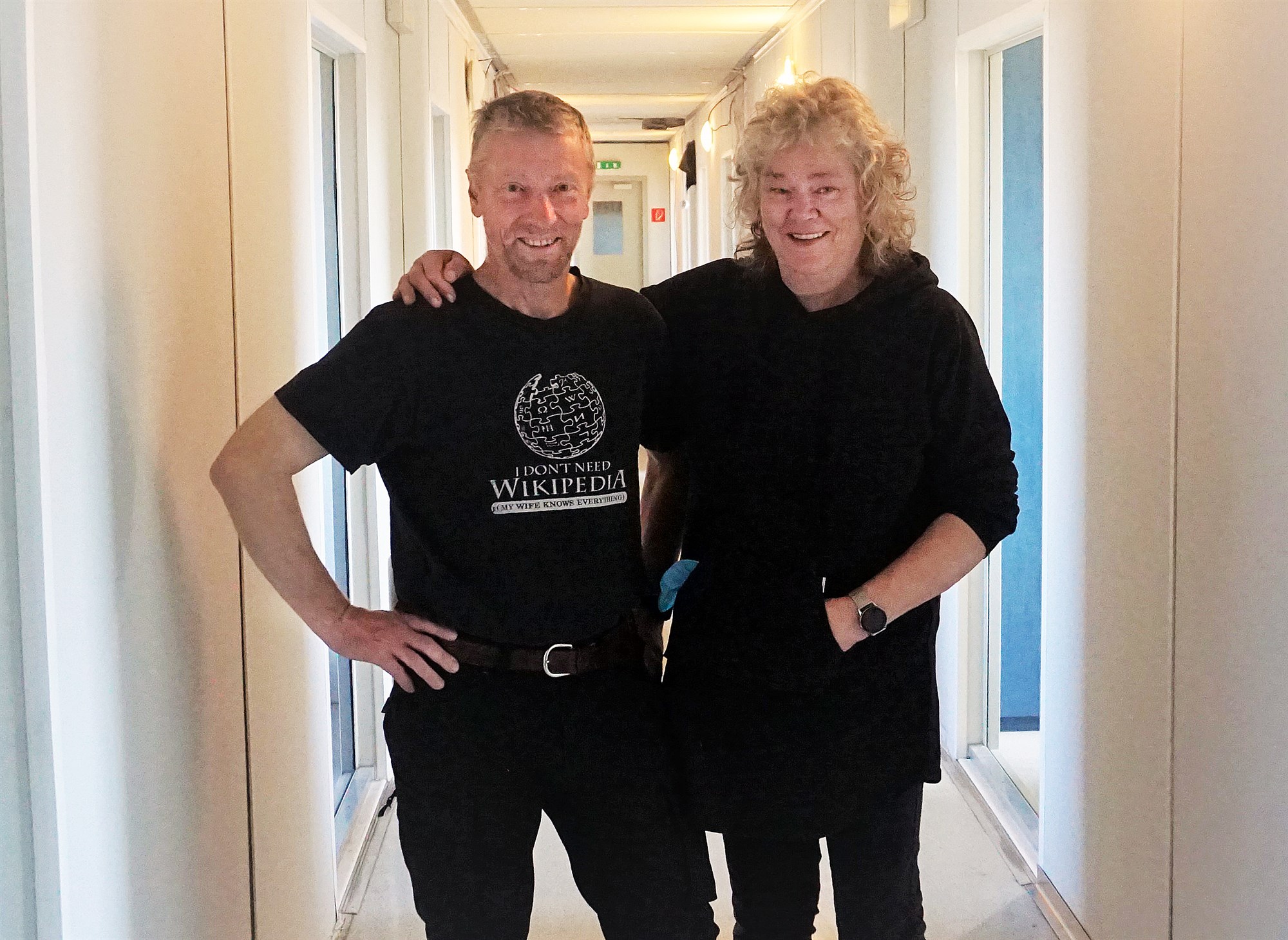 Þegar tíðindamaður Bændablaðsins kom í heimsókn fimmtudaginn 9. september var matráðskonan Sigþrúður Sigfúsdóttir að þrífa skálann ásamt Bjarna Kristinssyni eftir þessar fjórar nætur sem gangnamenn höfðu notað nýja skálann. Mynd / HLJ