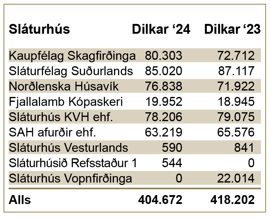 Samkvæmt upplýsingum frá Matvælastofnun var alls 404.672 lömbum slátrað nú í haust, en 418.202 haustið 2023. Þegar litið er aftur til ársins 2021 hefur fjölda þeirra lamba sem farið hefur til slátrunar fækkað um 60 þúsund.