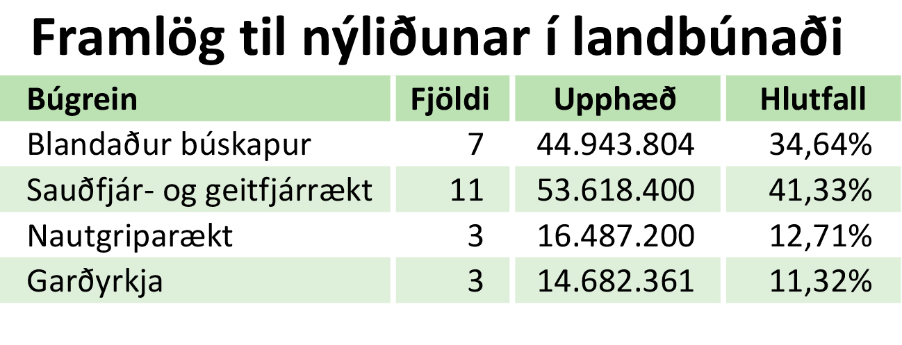 Framlögum til nýliðunar í landbúnaði var úthlutað í fyrsta sinn í fyrra