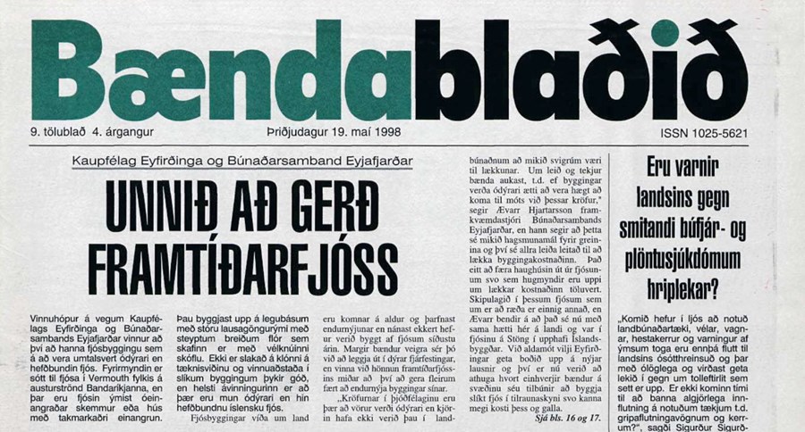 Í níunda tölublaði 1998, þann nítjánda maí, var sagt frá því á forsíðu að unnið væri að því í vinnuhópi á vegum Kaupfélags Eyfirðinga og Búnaðarsambands Eyjafjarðar að hanna fjósbyggingu sem á að vera umtalsvert ódýrari en hefðbundin fjós. Þau byggjast upp á legubásum með stóru lausagöngurými með steyptum breiðum flór sem skafinn sé með vélknúinni skóflu.