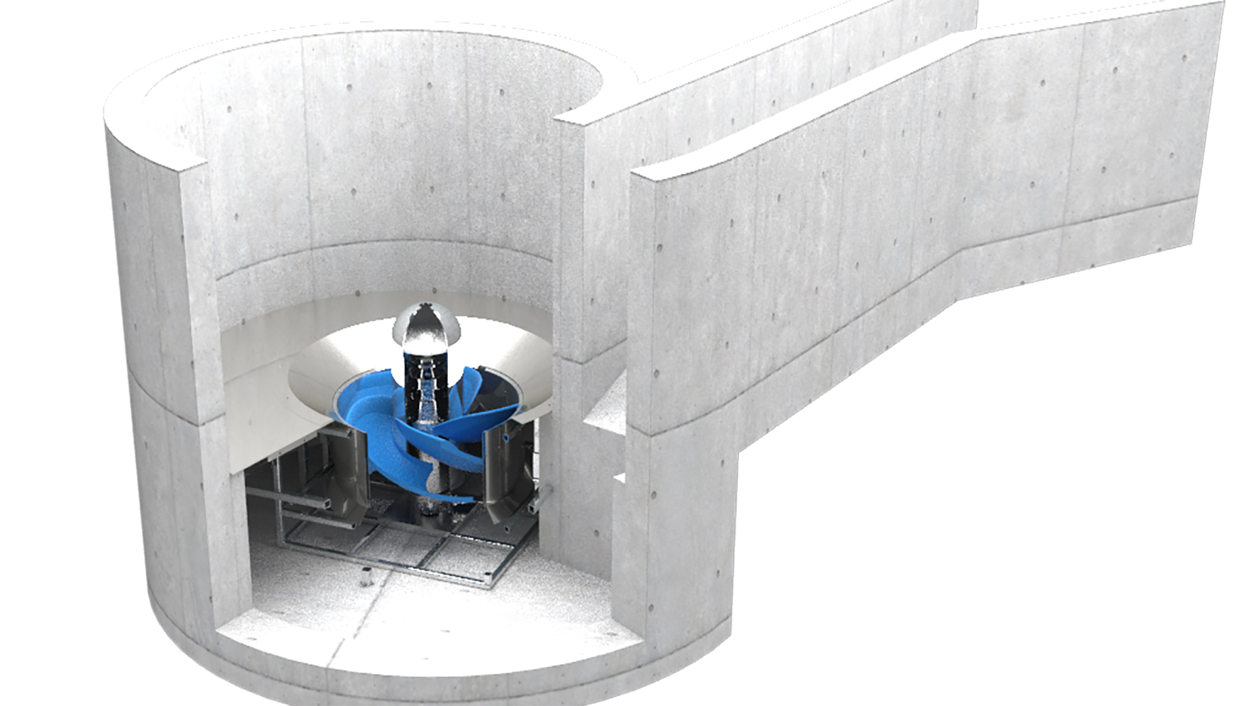 Í þessari hönnun er hluti lækjarins látinn renna í gegnum þetta mannvirki sem myndar vatnshvirfil líkt og þegar tappi er tekin úr baðkari. Það gefur stóraukna orku þótt fallhæðin sé sáralítil.