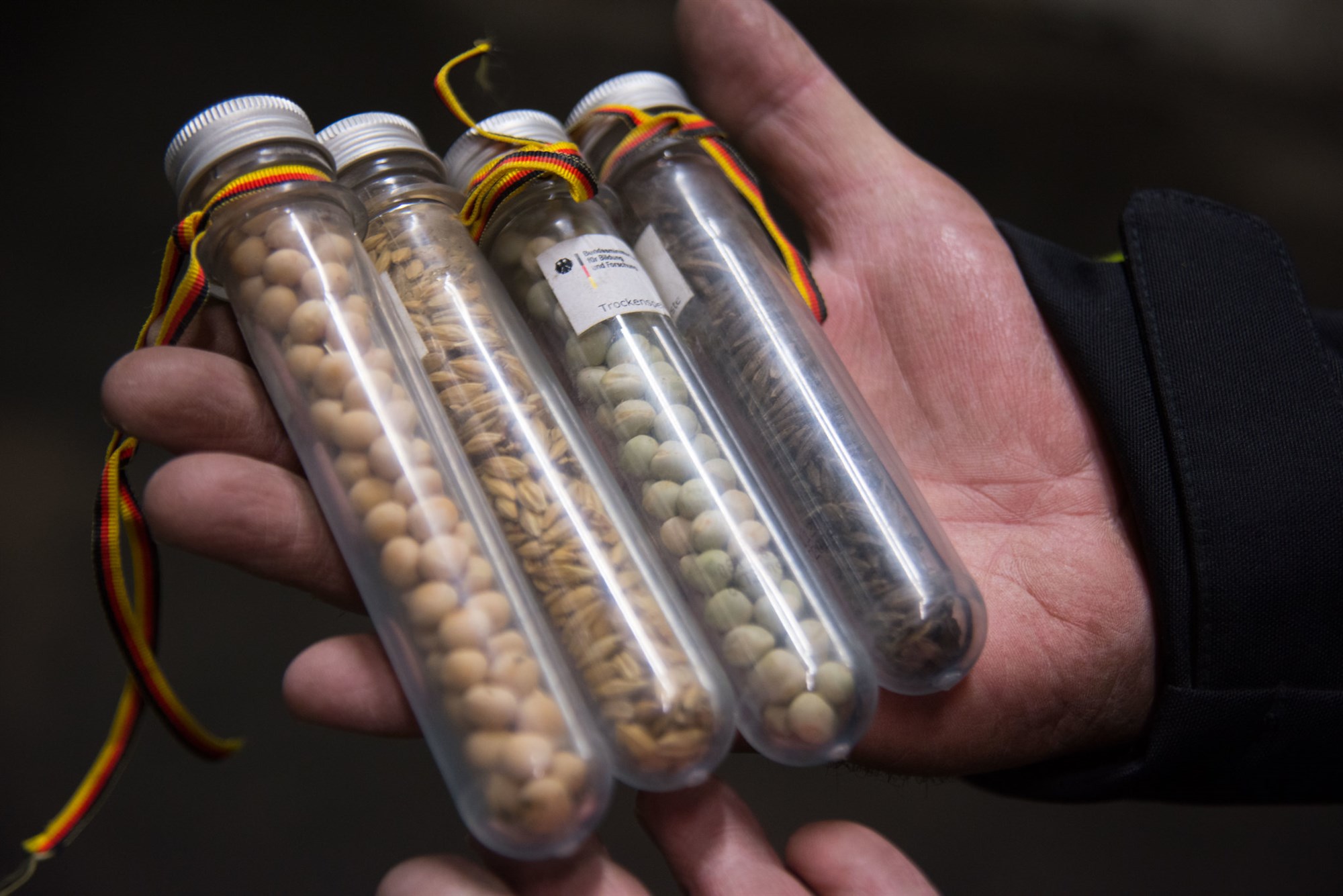 NordGen lagði meðal annars inn fræ af dönsku grænkáli, finnskum blaðlauk, norskum smára, sænsku byggi, vallhumli frá Færeyjum og íslensku grasi.