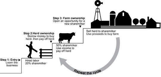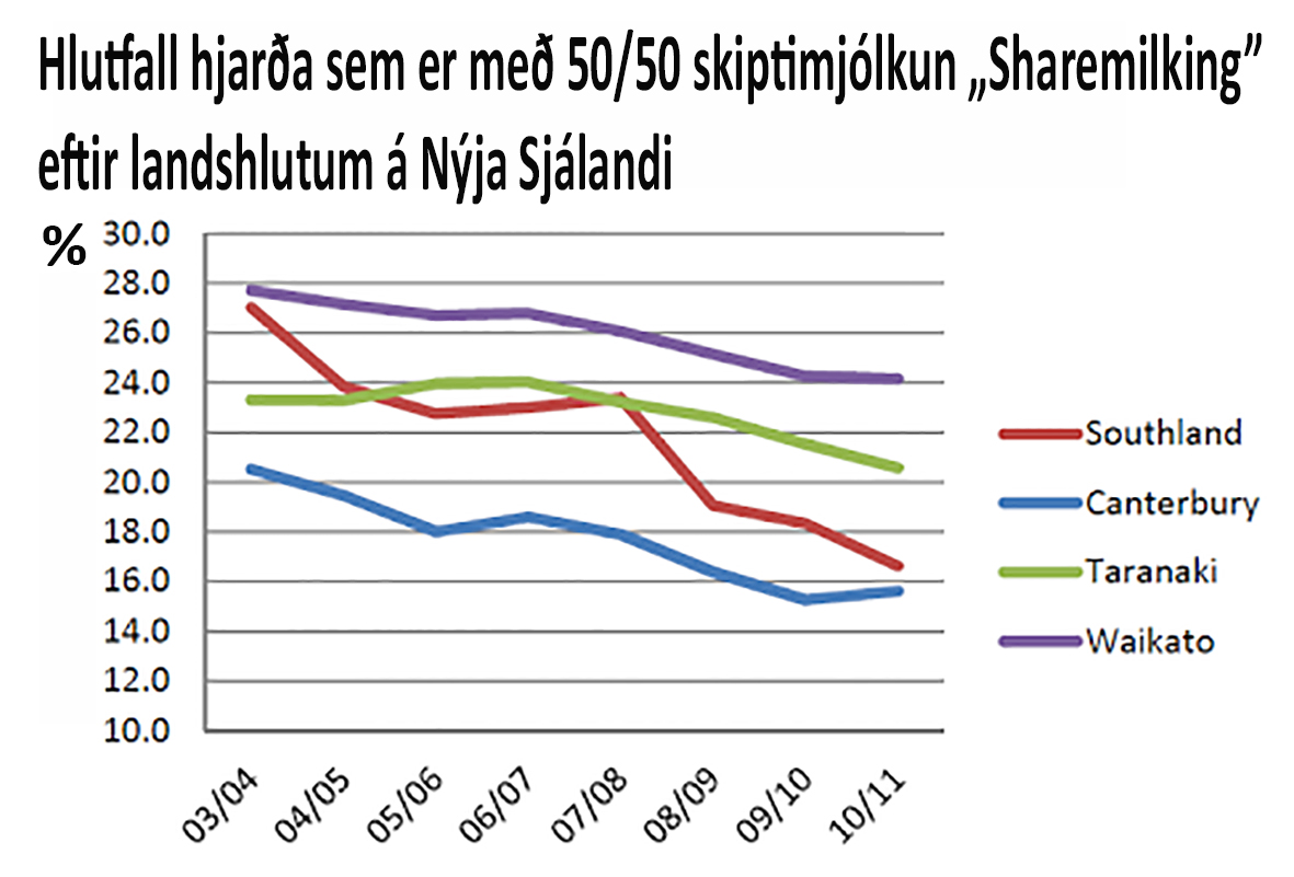 Í Nýja-Sjálandi er löng hefð fyrir því í mjólkurframleiðslu að eigandi jarðar og húsakosts sé ekki endilega sá sem á kýrnar og sér um mjaltirnar.