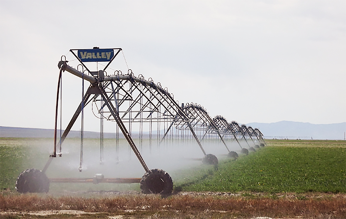 Gríðarlegu vatnsmagni er dælt upp úr grunnvatnslindum við ræktun á refasmára í Kaliforníu og Arizona.