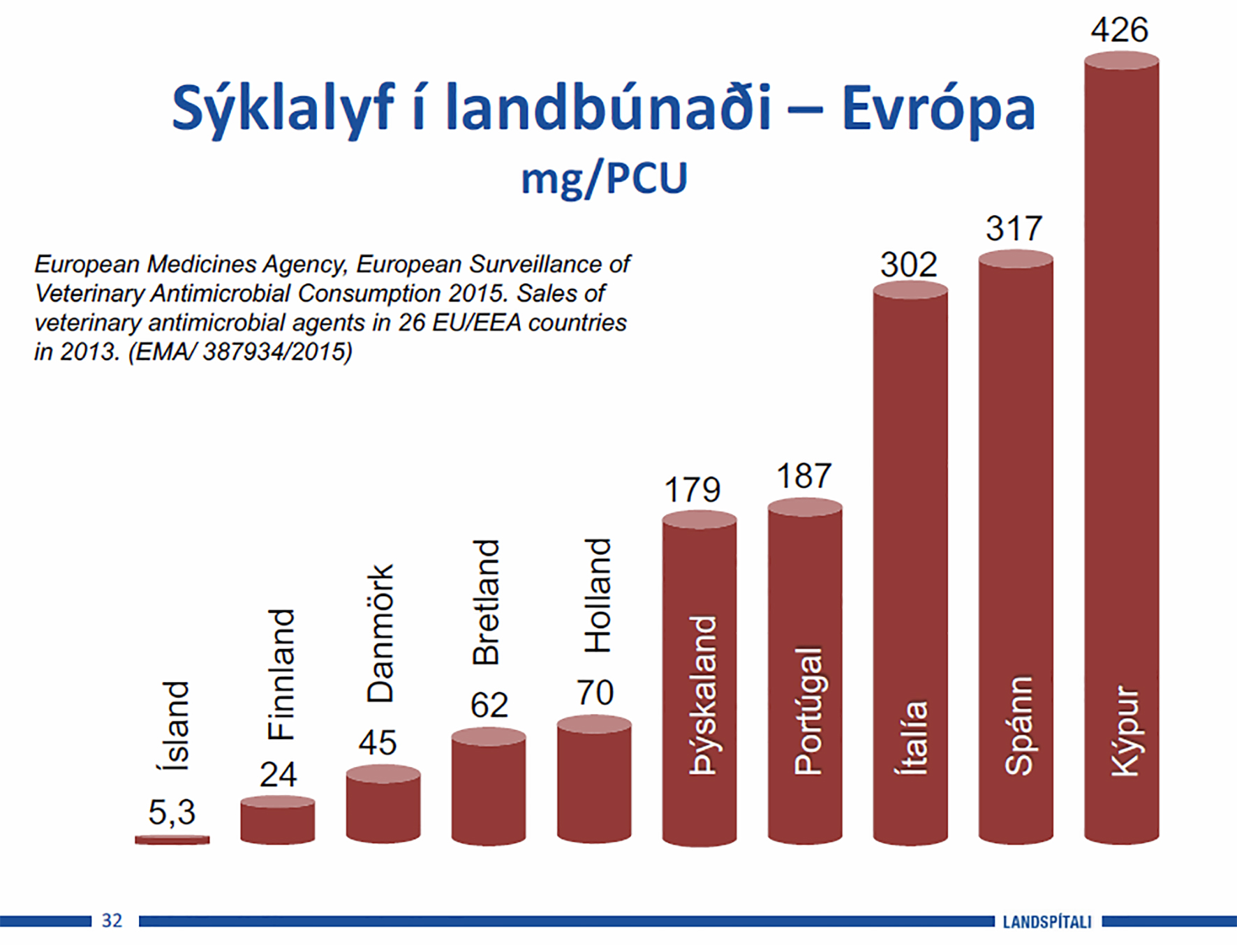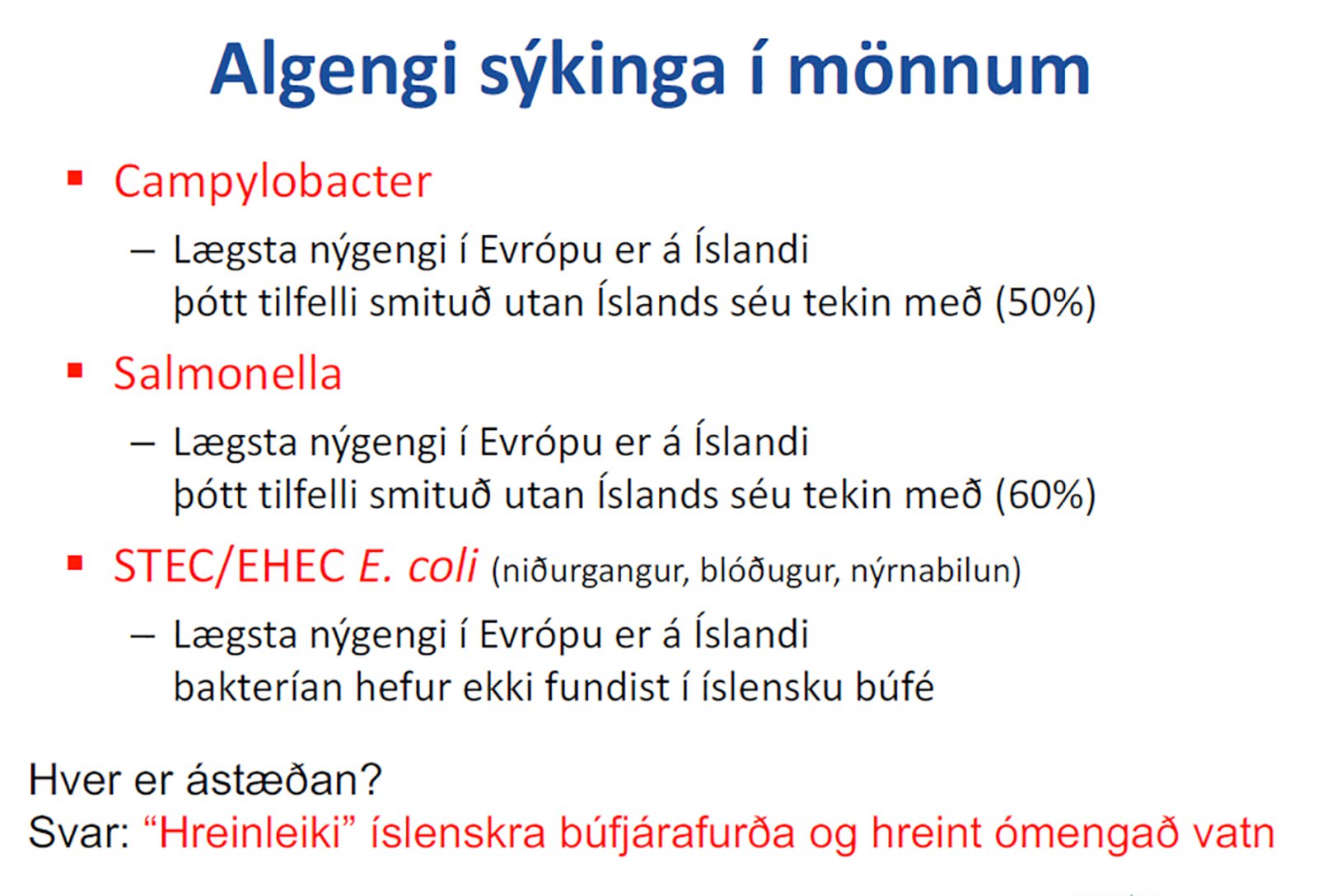 Karl G. Kristinsson benti á í sínu erindi í Iðnó að Ísland hefði algjöra sérstöðu á heimsvísu hvað varðaði lága tíðni á sýklalyfjaónæmi og að „súnur“, þ.e. smitsjúkdómar sem geta borist í menn frá dýrum og frá mönnum til dýraværu, hér mun fátíðari. Brýnt væri að verja þessa stöðu.