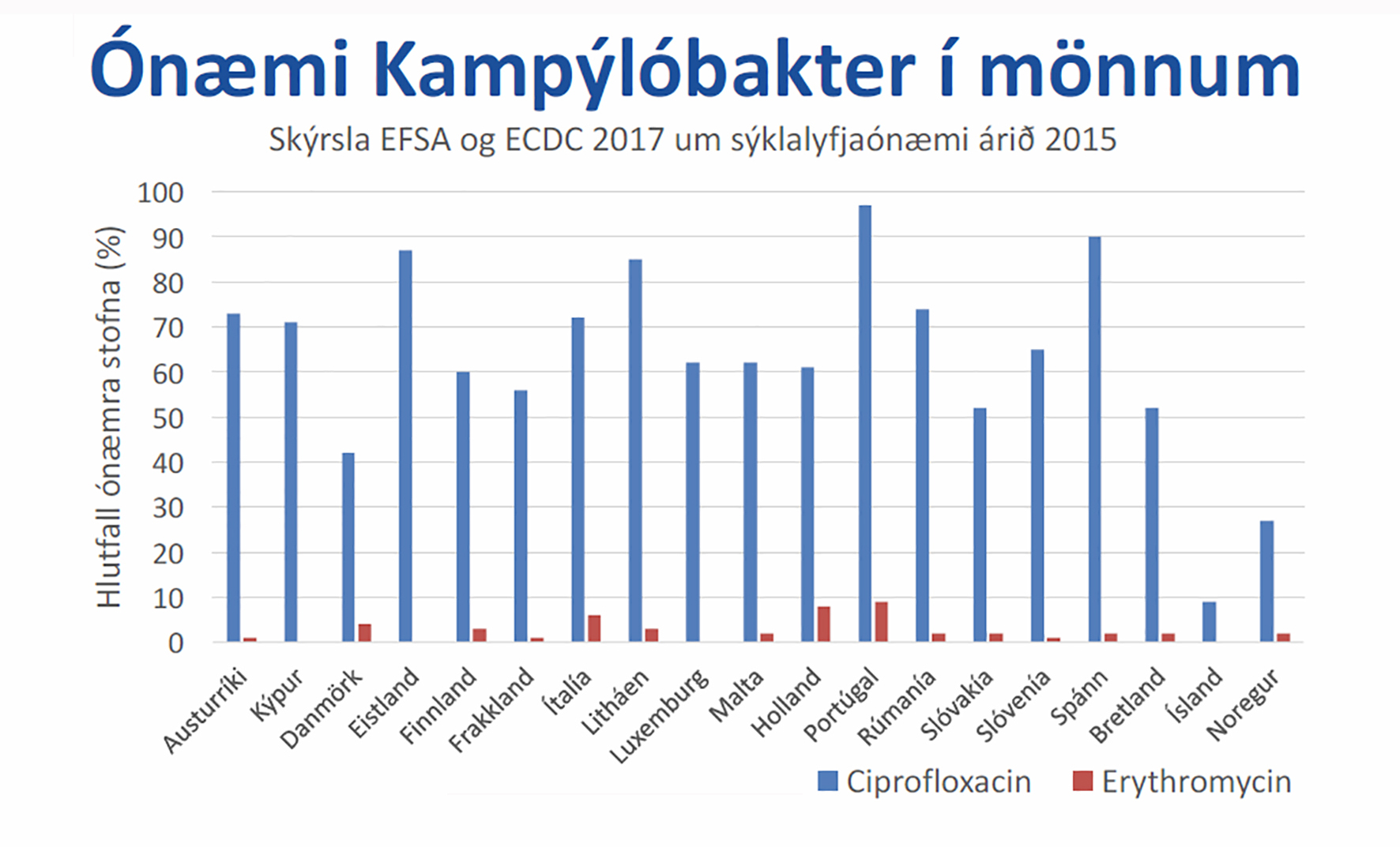 Fram kom í erindi Karls í Iðnó að enn hafi hvorki fundist ónæmi fyrir karbapenem- né kólistínlyfjum í umhverfi eða dýrum á Íslandi. Því þurfi að fylgjast vel með innflutningi á matvælum og dýrafóðri og leita kerfisbundið að sýklalyfjaónæmi í þeim.
