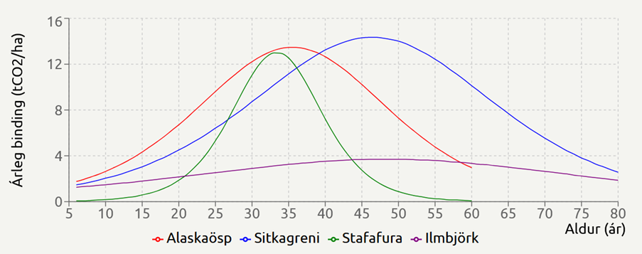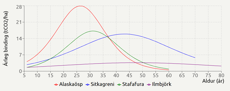 „Sé aðeins horft til kolefnisbindingar er sennilega ekki betra að rækta lauftré frekar en barrtré,“ segir Ingibjörg og heldur áfram: „Ef tekið er tillit til annarra þátta eins og endurvarps inngeislunar er svarið væntanlega já, því sumargrænn trjágróður endurvarpar mun meiri inngeislun en sígrænn barrviður. En spurningin er að mestu leyti ómerk því skógrækt er ekki góð loftslagsaðgerð eins og hún er stunduð hér á landi í dag.