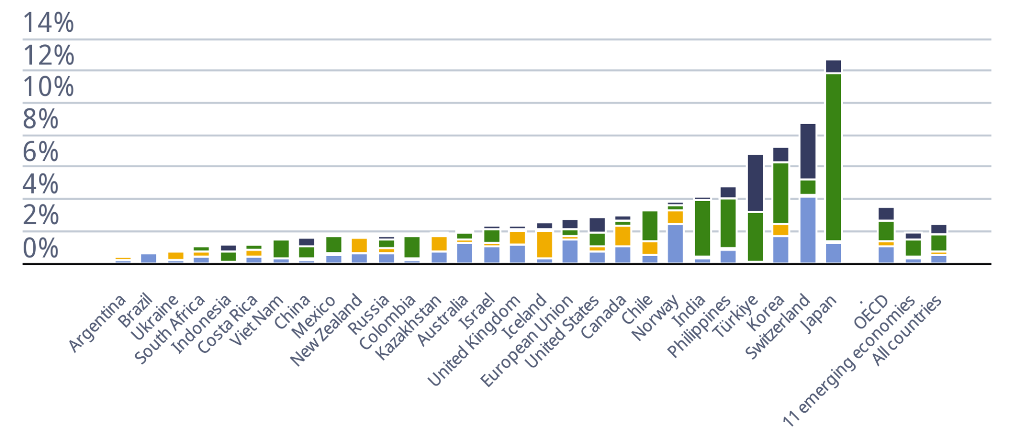 Þetta sést í skýrslu Efnahags- og framfarastofnunarinnar (OECD) frá síðasta ári um hlutfall General Services Support Estimate (GSSE)-framlaga ríkja til almennrar þjónustu við landbúnað á tímabilinu 2022–2024. Hlutfall GSSE af heildarstuðningi við landbúnað á Íslandi nam um 3,9%, samanborið við um 4,7% í Noregi, um 12,9% í Evrópusambandinu, 12,6% í Bretlandi, 25,2% í Kanada og 12% í Bandaríkjunum.