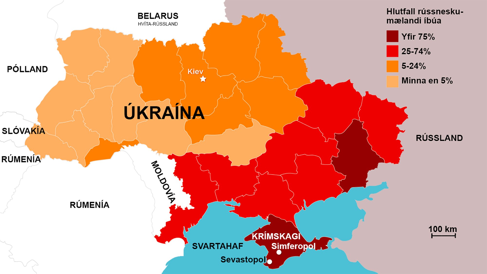 Rússneska er áberandi tungumál í stórum hluta Austur-Úkraínu.