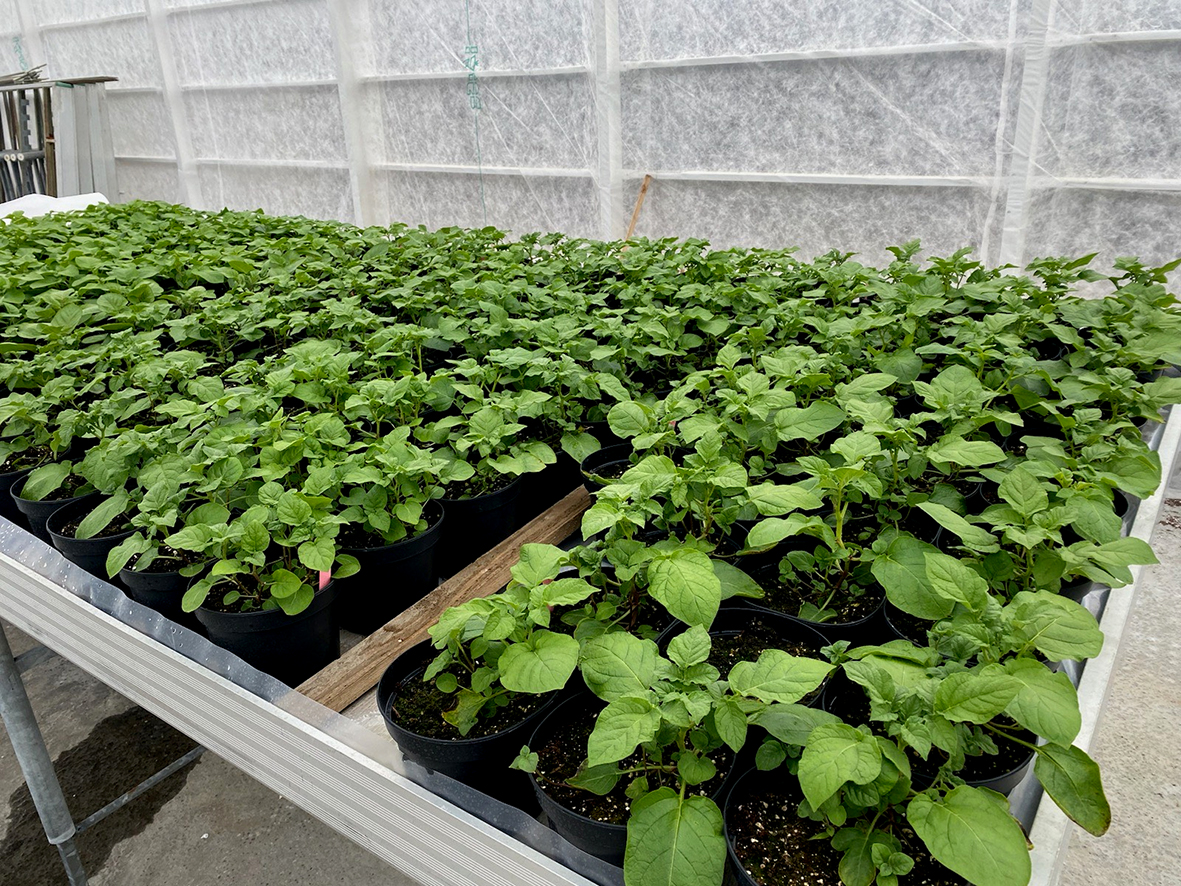 Mynd úr gróðurhúsinu í Dilksnesi frá því í sumar, en þar er stunduð stofnútsæðisræktun á hreinu kartöfluútsæði fyrir íslenska kartöflubændur.